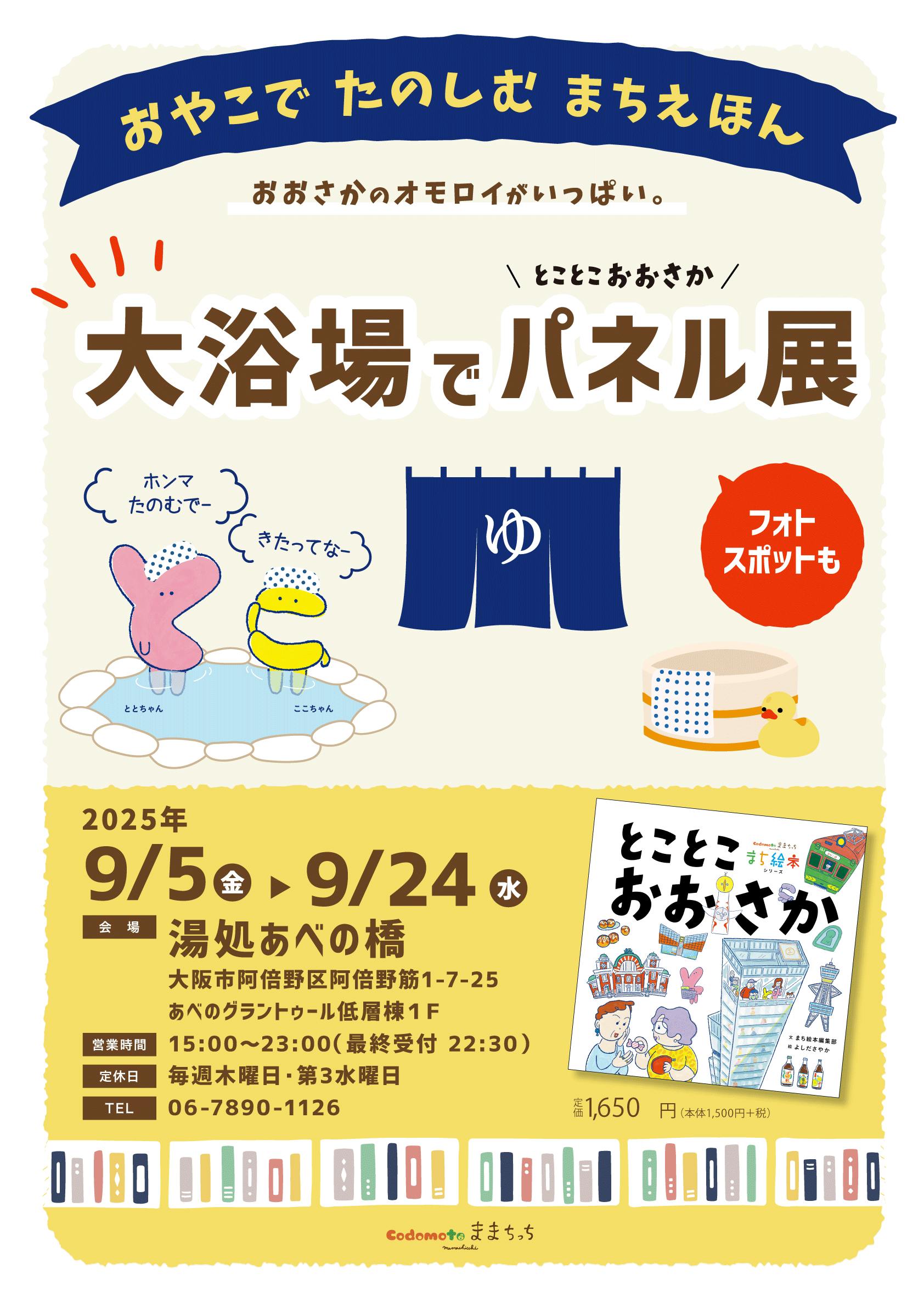 「大浴場でまち絵本とことこおおさかパネル展」