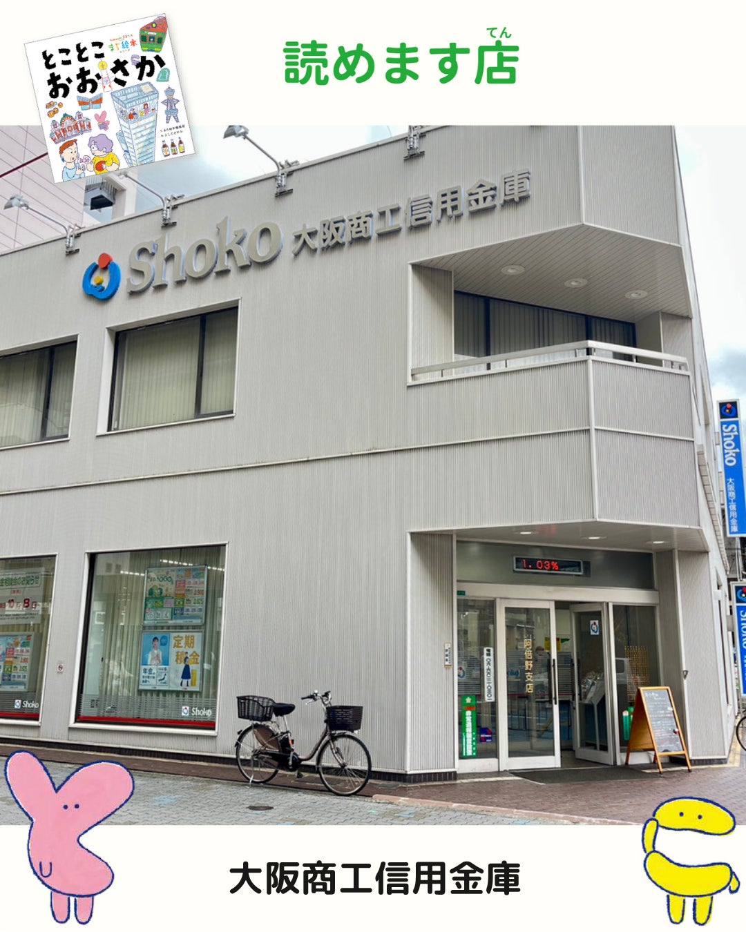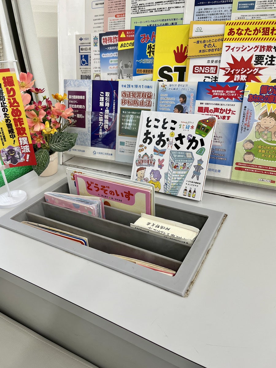 大阪商工信用金庫さんの阿倍野支店待合スペースに、まち絵本を置いていただいています!