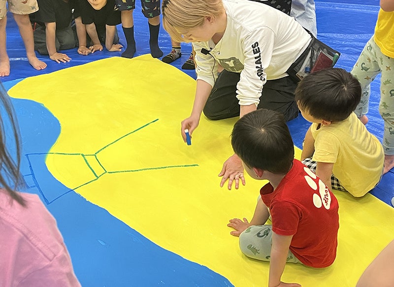 よしださんのライブペイントのあと、子どもたちも大人もいっしょに大阪のまちを描いていきましたよ!