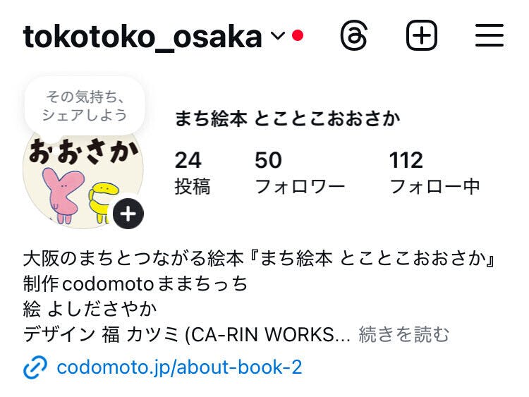 codomotoままちっちです。「まち絵本 とことこおおさか」のInstagram、Xを始めました!Instagramでは、まち絵本の取り扱い店、読めます店(まち絵本設置店)やイベントなどの情報を。Xでは、オリジナルキャラクターととちゃん、ここちゃんと大阪のまちを出かけたくなるような呟きお届けしています。ぜひ、のぞきにきてくださいね!いいね、フォロー、シェアもお待ちしています。■まち絵本とことこおおさかInstagram tokotoko_osakaX tokotokoosakaまち絵本取扱店一覧は \こちら/