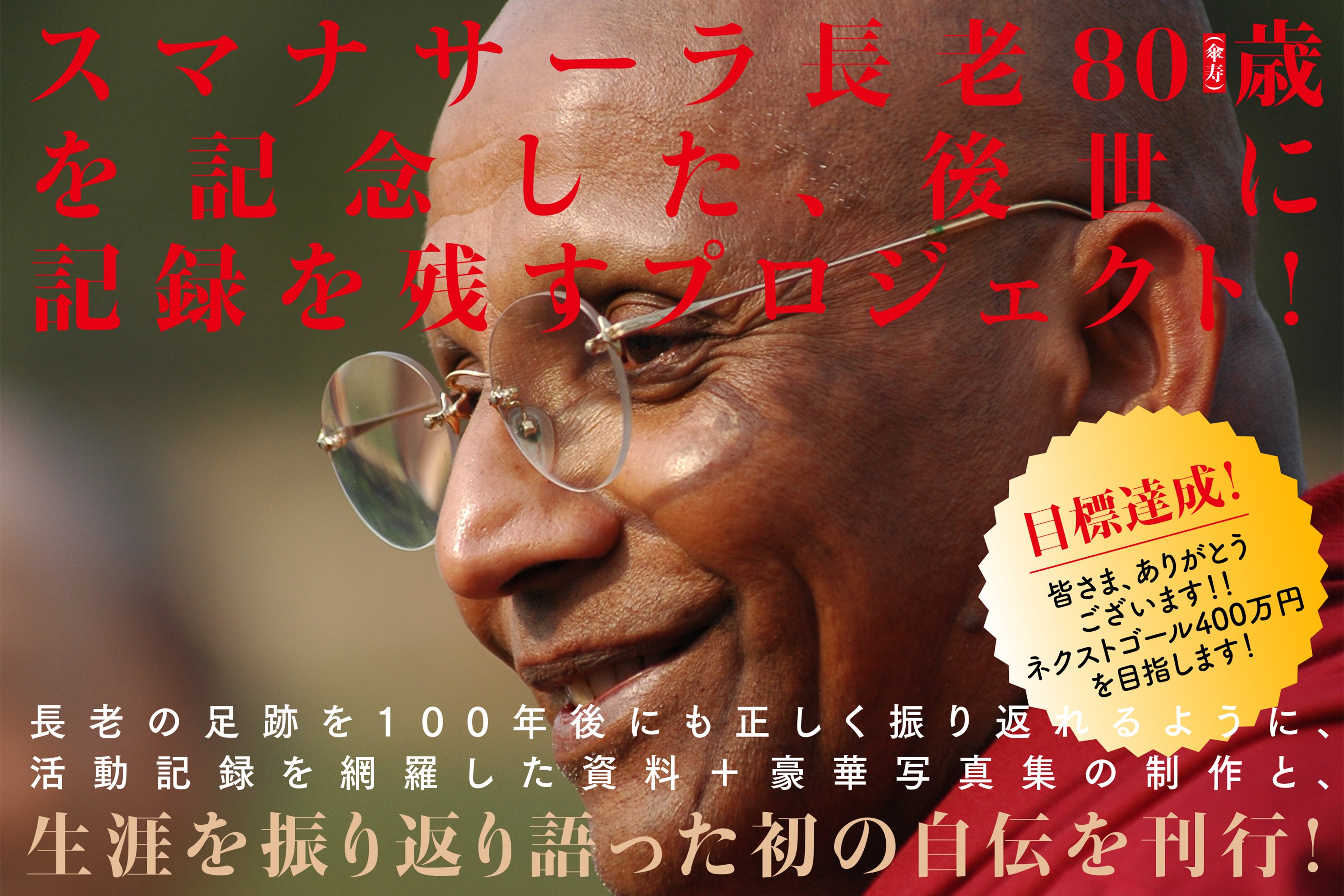 皆さんには引き続き、スマナサーラ長老の傘寿をお祝いしながら、「自伝」と「豪華写真資料集」の刊行をめざすこの「傘寿記念プロジェクト」を広めていただけると光栄です。