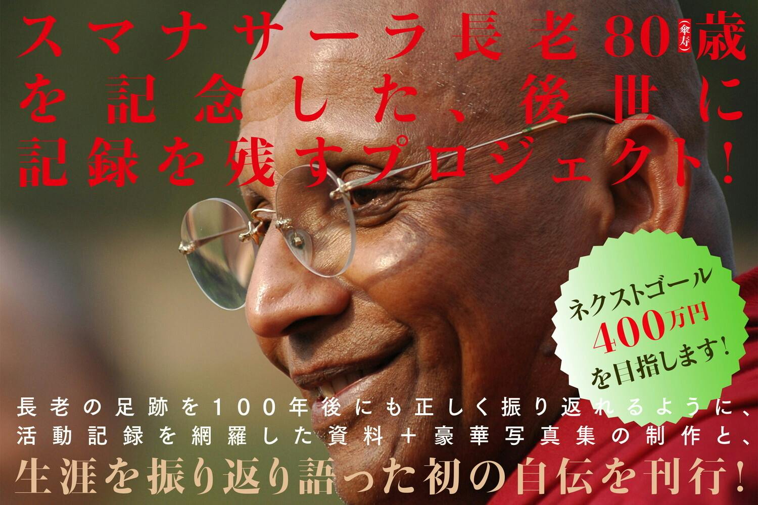アルボムッレ・スマナサーラ長老が満80歳を迎えるのを記念し、語り下ろしによる初の自伝と、写真と資料で活動を記録した豪華写真資料集を刊行します。長老の半生、そして1980年の来日以来、ブッダの教えと瞑想実践を通じて、日本の仏教、文化を揺さぶり続けている40年あまりの記録を、後世に残すプロジェクトです。