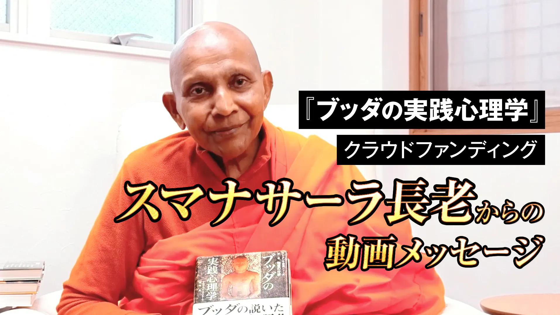今回のクラウドファンディングでは、スマナサーラ長老ご本人からの動画メッセージをいただき、YouTubeにて公開しています。
