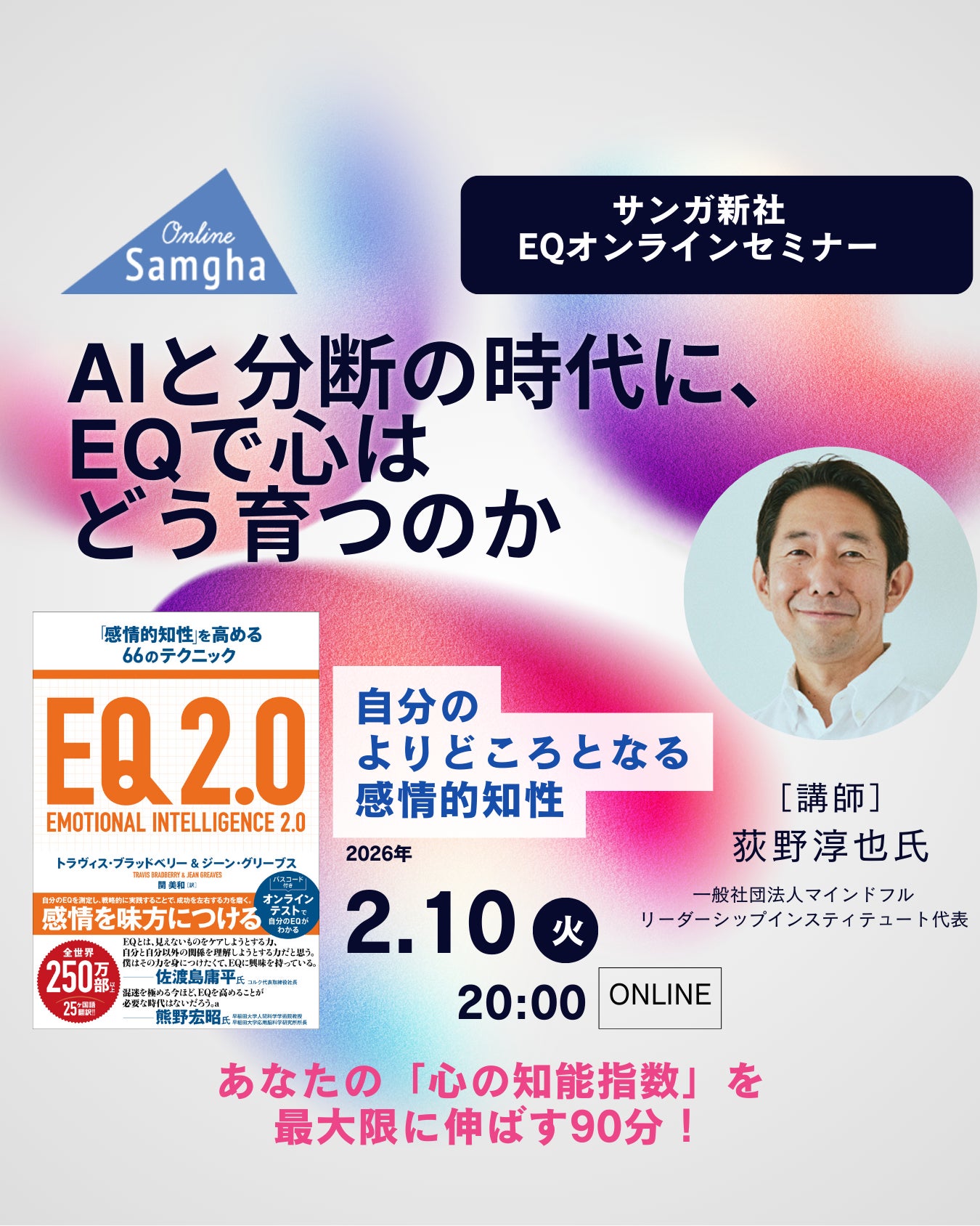 【2/10(火)20時開催】『EQ2.0』購入者1,000円割引! 荻野淳也さんEQオンラインセミナー