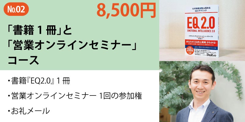 クラウドファンディングのリターンでは、「営業オンラインセミナー」もご用意しました。ビジネスにEQ(感情的知性)を活かし、ストレスを減らしながらも、結果を出していく実践的スキルを学びます