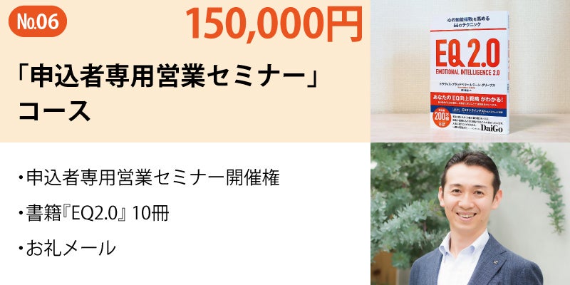 河合克仁先生がご登壇される営業オンラインセミナーが入ったリターンは以下です。