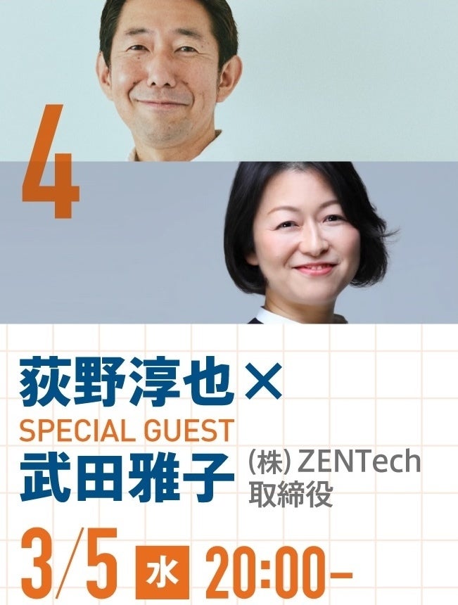 2025年3月5日(水) には、荻野淳也先生をホストに迎え、スペシャルゲストとして武田雅子さんをお招きし、対談講演形式でセミナーを実施します。