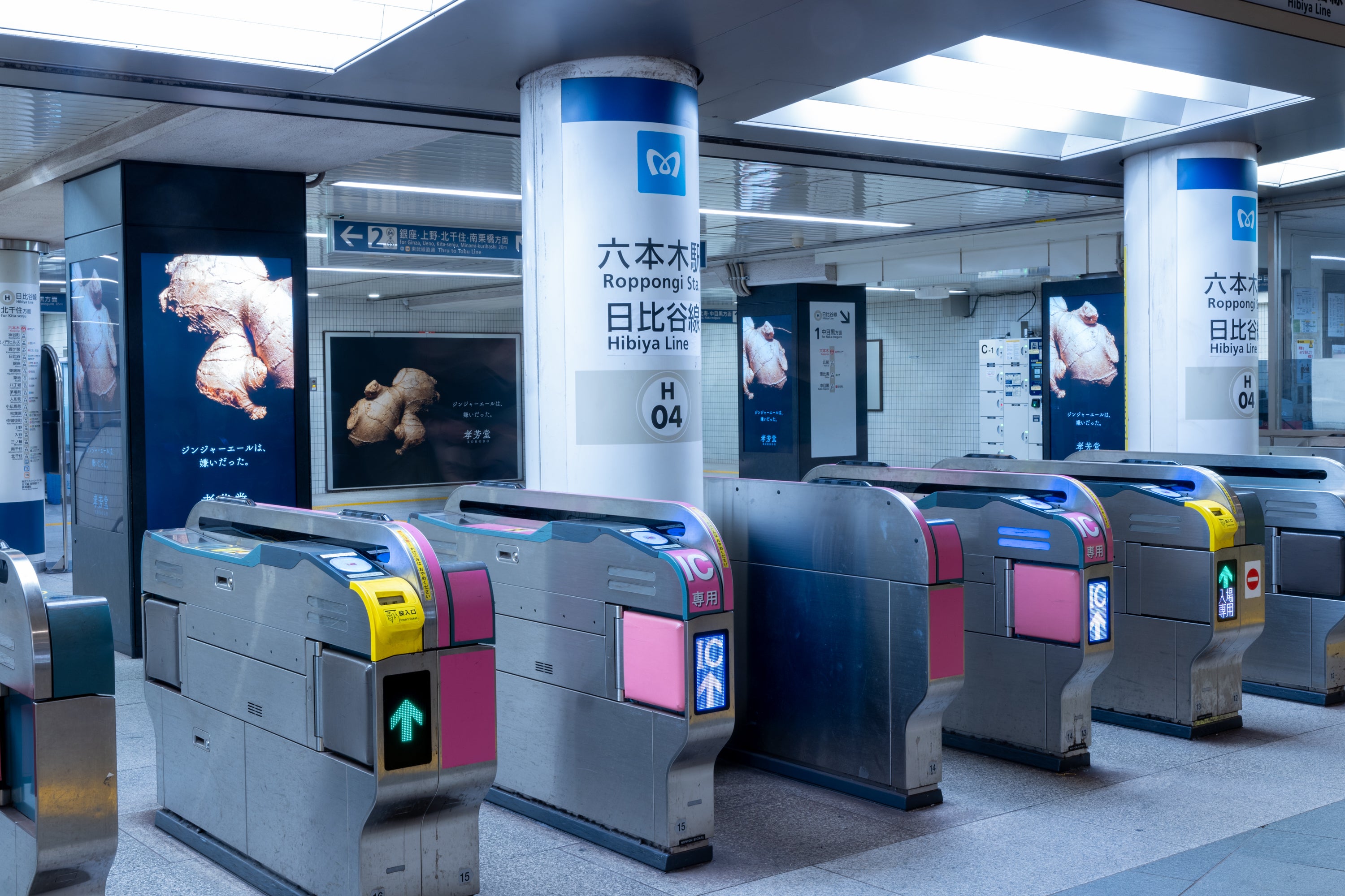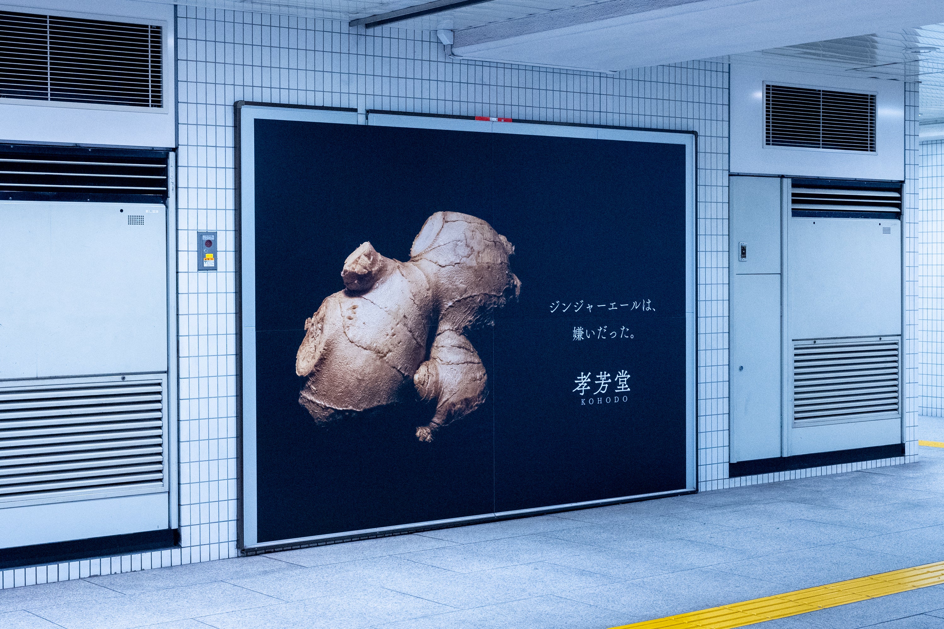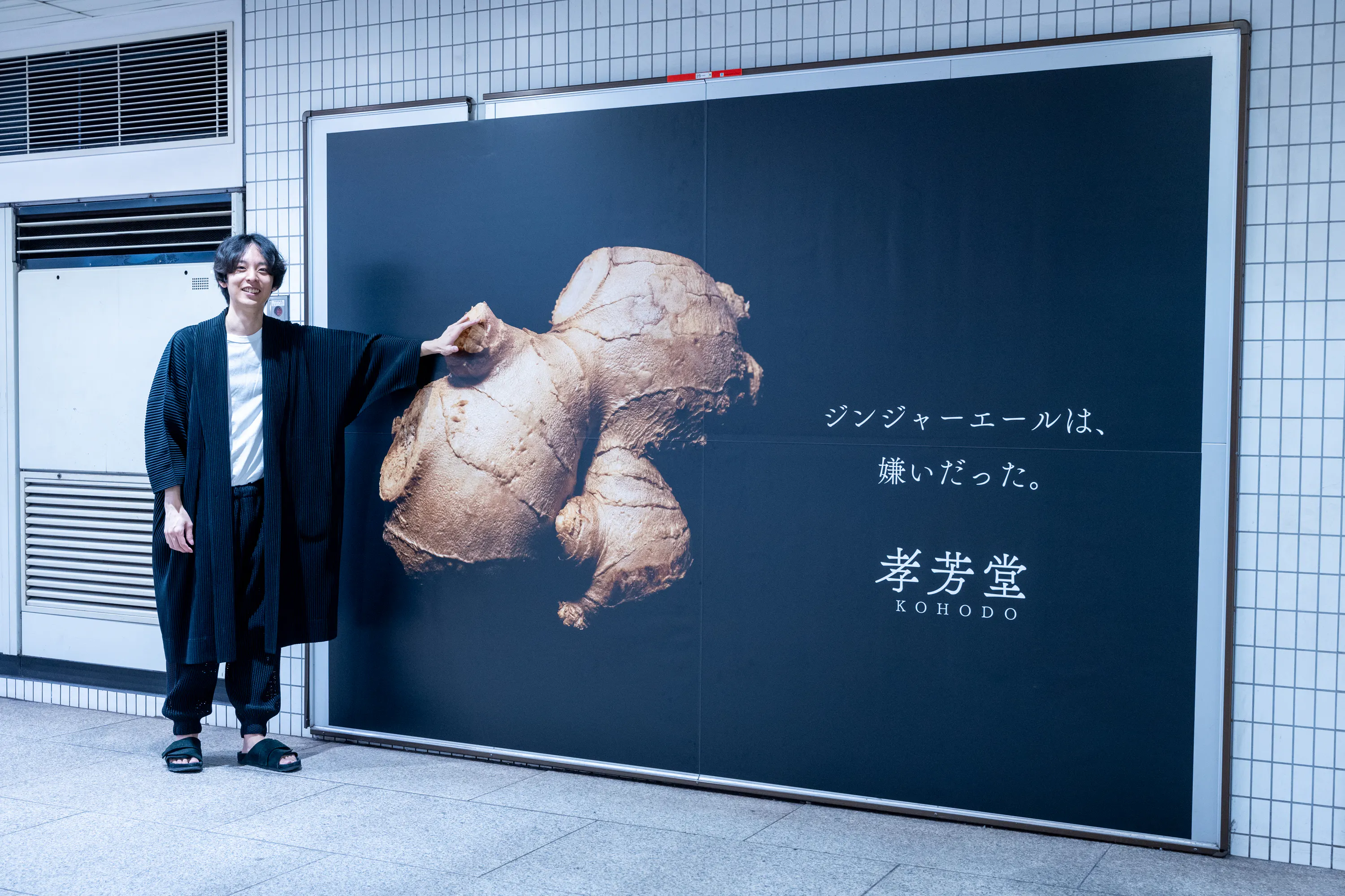 今回のプロジェクトに合わせて、9月23日から29日まで、日比谷線六本木駅西麻布改札にて、ブランドの起源を象徴するビジュアルを展開します。この場所は、私が孝芳堂株式会社を設立する前、前職への通勤で頻繁に利用していた改札であり、ジンジャーエールと人生を共にするかを考え始めた思い出深い場所です。
