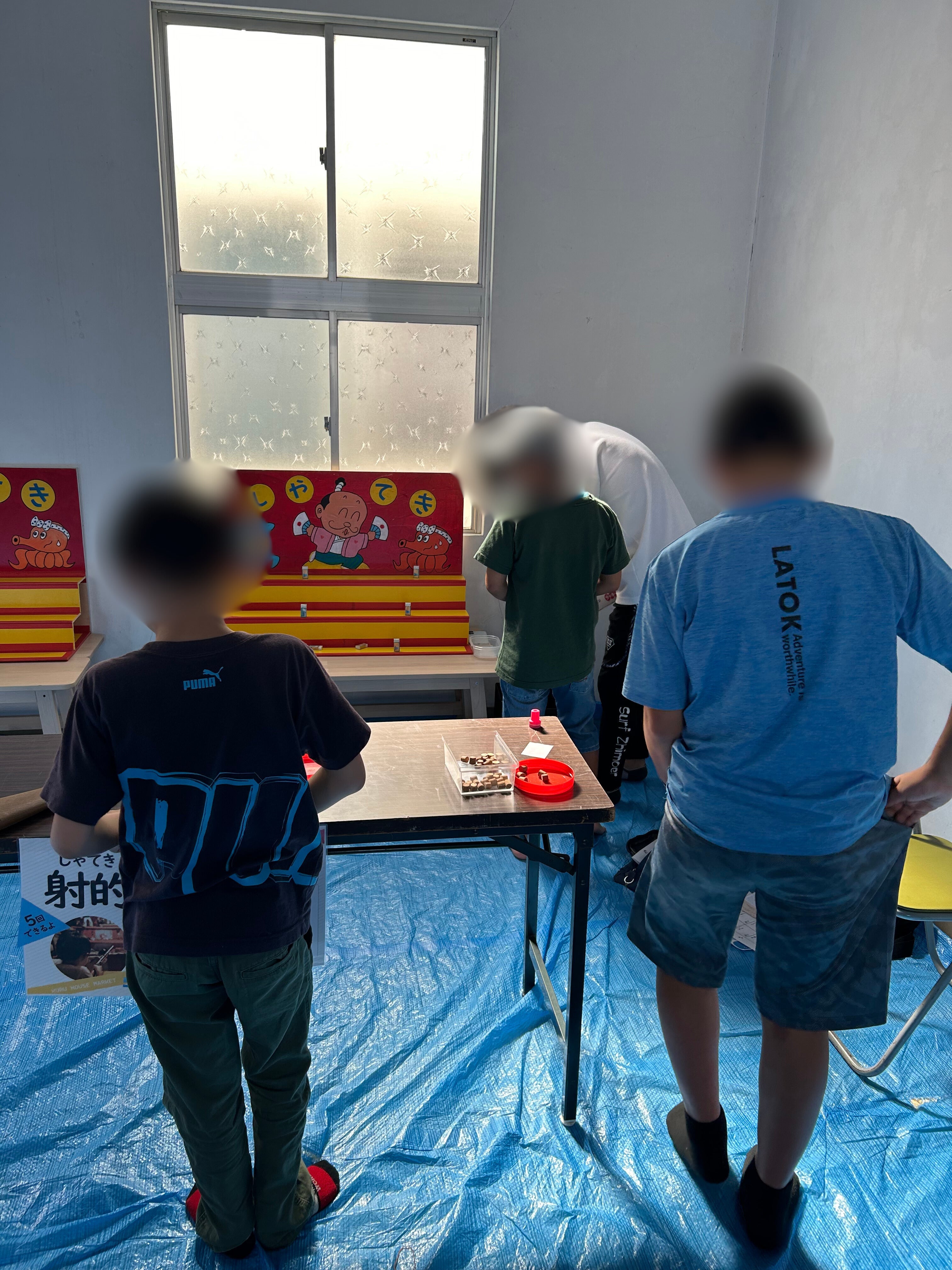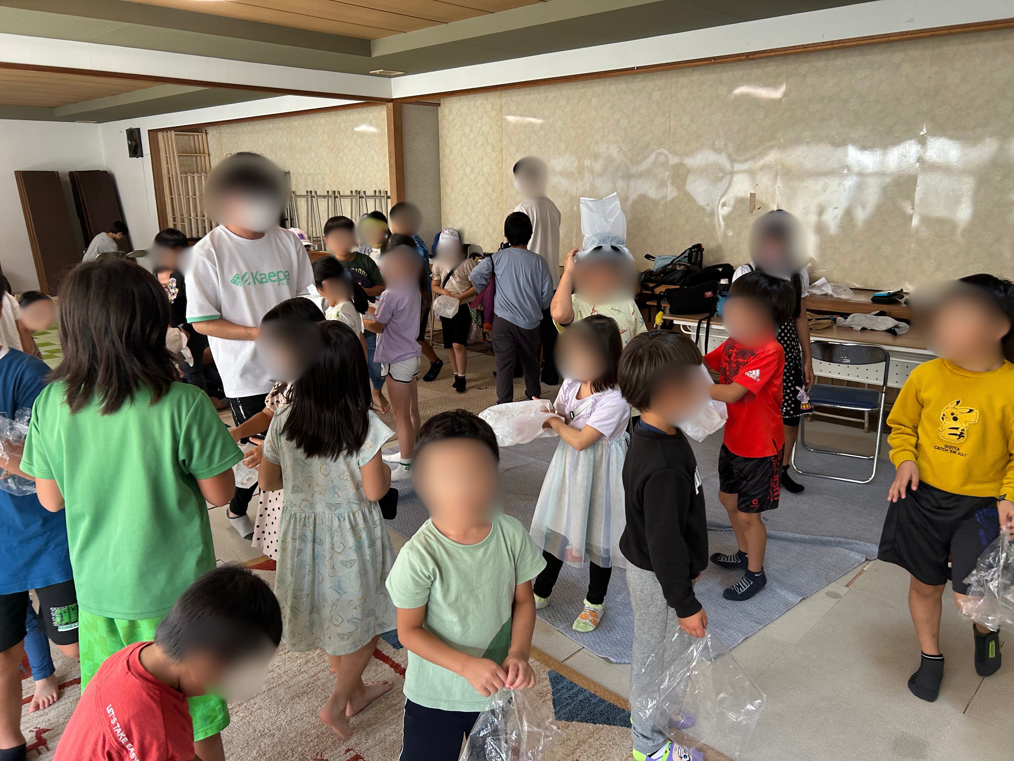 お菓子まきの魅力は、どこに飛んでいくかわからないお菓子をみんなで追いかけるワクワク感!「あっちに行った!」「もう少し右!」など、周りの声も飛び交いながら、子どもたちは全身を使ってキャッチを試みていました。スタッフも「もっと取れるよ!」と声をかけながら、子どもたちの熱中する姿を見守り、笑顔で応じていました。特に、今回のお菓子まきでは、年上の子どもたちが自然と小さな子たちをサポートする姿が印象的でした。「ここにあるよ!」と教えたり、落ちて拾えなかったお菓子を分けてあげたりと、子どもたち同士で助け合う様子が見られました。このように、単なる遊びだけでなく、協力や思いやりの心を育む瞬間が生まれるのもクルハウス祭りならではです。お菓子まきが終わったあとは、それぞれの袋を見せ合い、どんなお菓子を取れたかを楽しそうに話す子どもたち。お菓子を分け合ったり、「このお菓子好き?」とお互いに交換したりする場面も見られ、自然とコミュニケーションが生まれていました。今年のクルハウス祭りは、参加してくれたみんなの笑顔と元気なおかげで、大盛況のうちに幕を閉じました。これからも、子どもたちが安心して集まり、思いっきり楽しめる居場所を提供できるよう、スタッフ一同力を合わせていきます。次回のイベントでも、もっとたくさんの笑顔が見られるような企画を用意してお待ちしています!次回は10月26日(土)になります