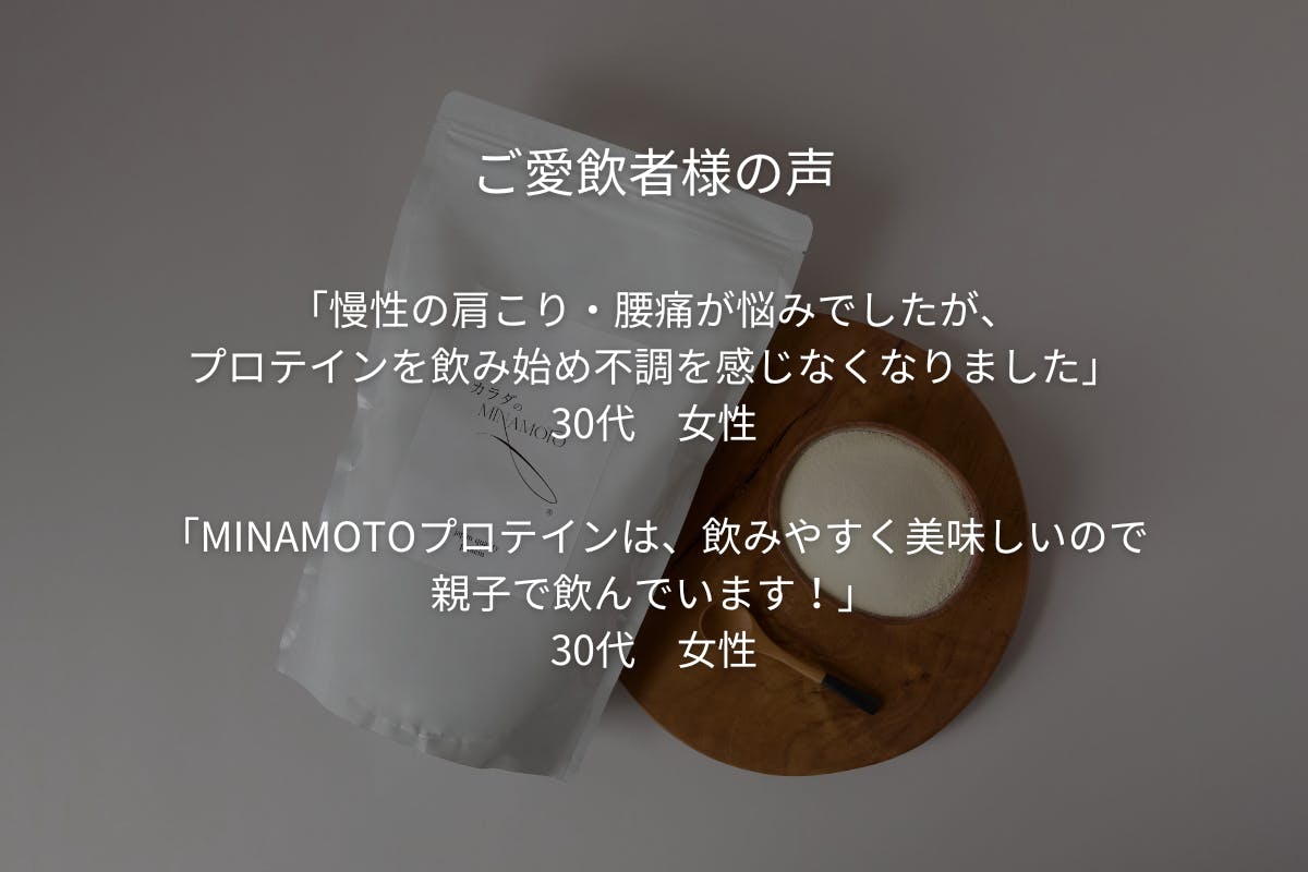 心と身体の健康を支えるプロテイン「MINAMOTO」シリーズを通して、一人でも多くの皆様の健康的な生活に、そして人生の様々な場面で少しでもお役に立つ事が出来ましたら幸いです。