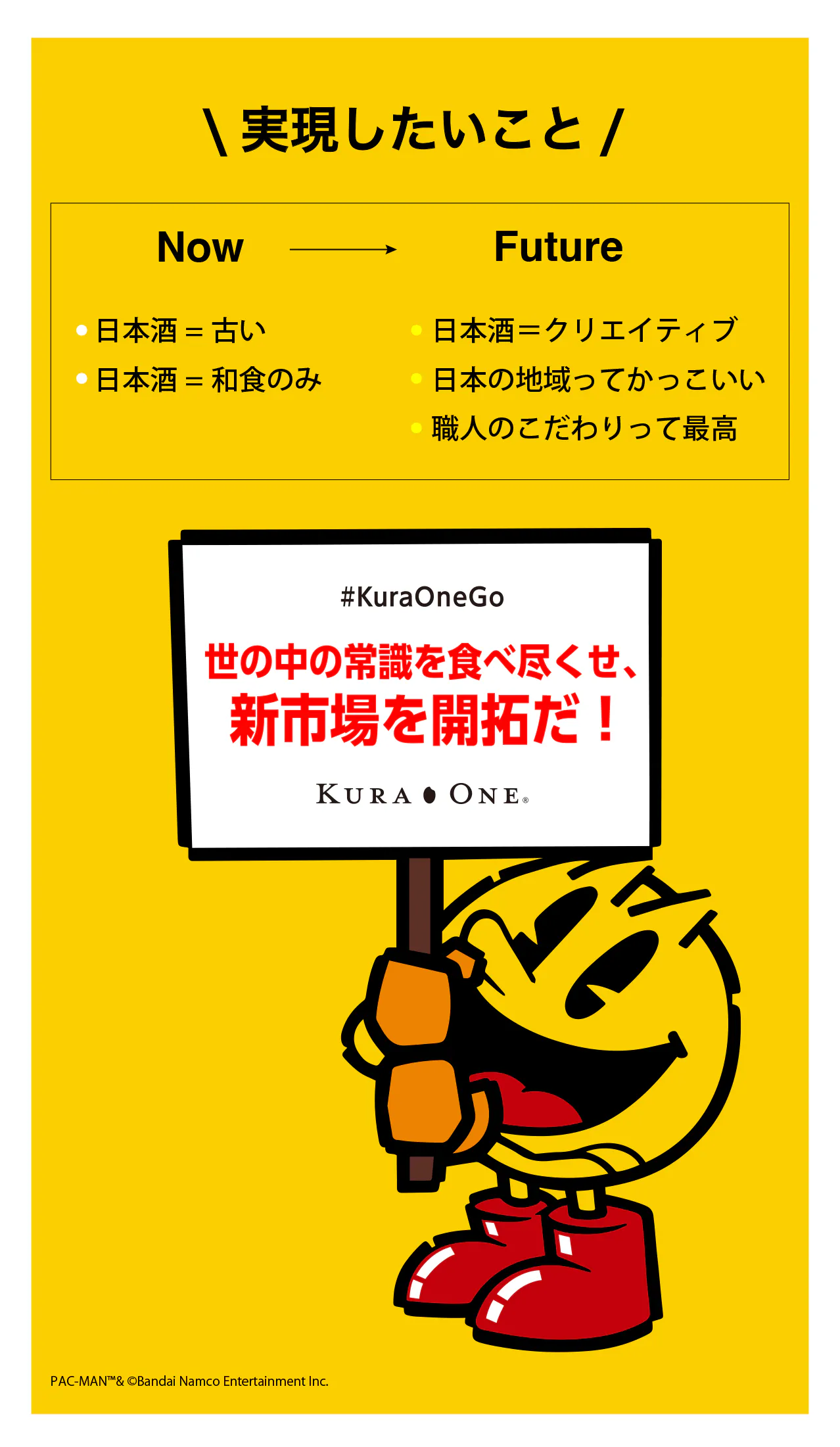 このプロジェクトでは、世界で最も知られたIPの1つであり大人気ゲームの「パックマン」が、KURA ONE®とのコラボレーションデザインとして登場します。「パックマン」は、バンダイナムコエンターテインメント社の代表的キャラクターです。