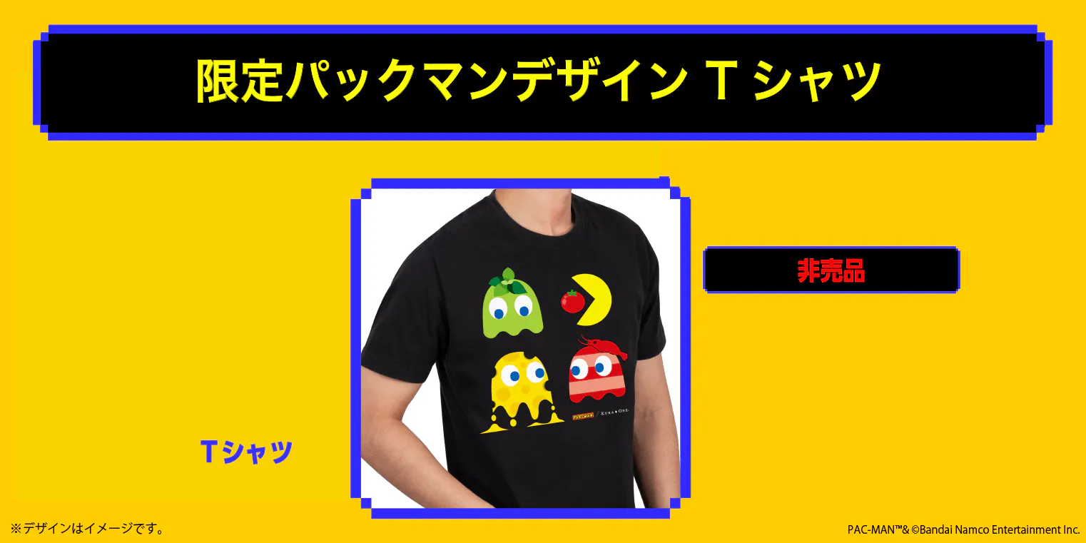 #KuraOneGo向けに特別にデザインされたパックマンとゴーストのオリジナのTシャツです。