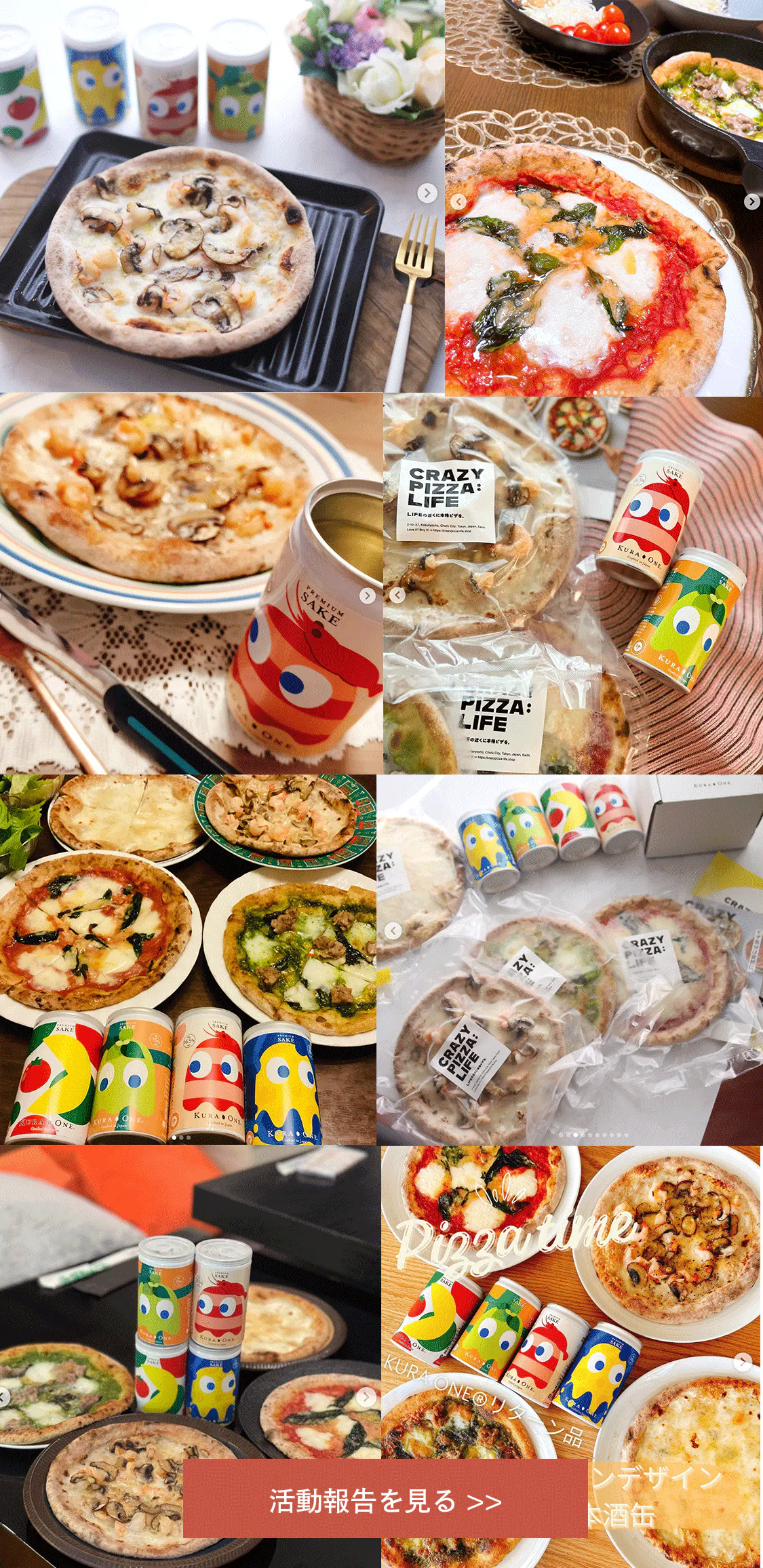 CRAZY PIZZA : LIFEのピザ4種と小さな日本酒缶KURA ONE4種のリターンサンプルをお届けしました。