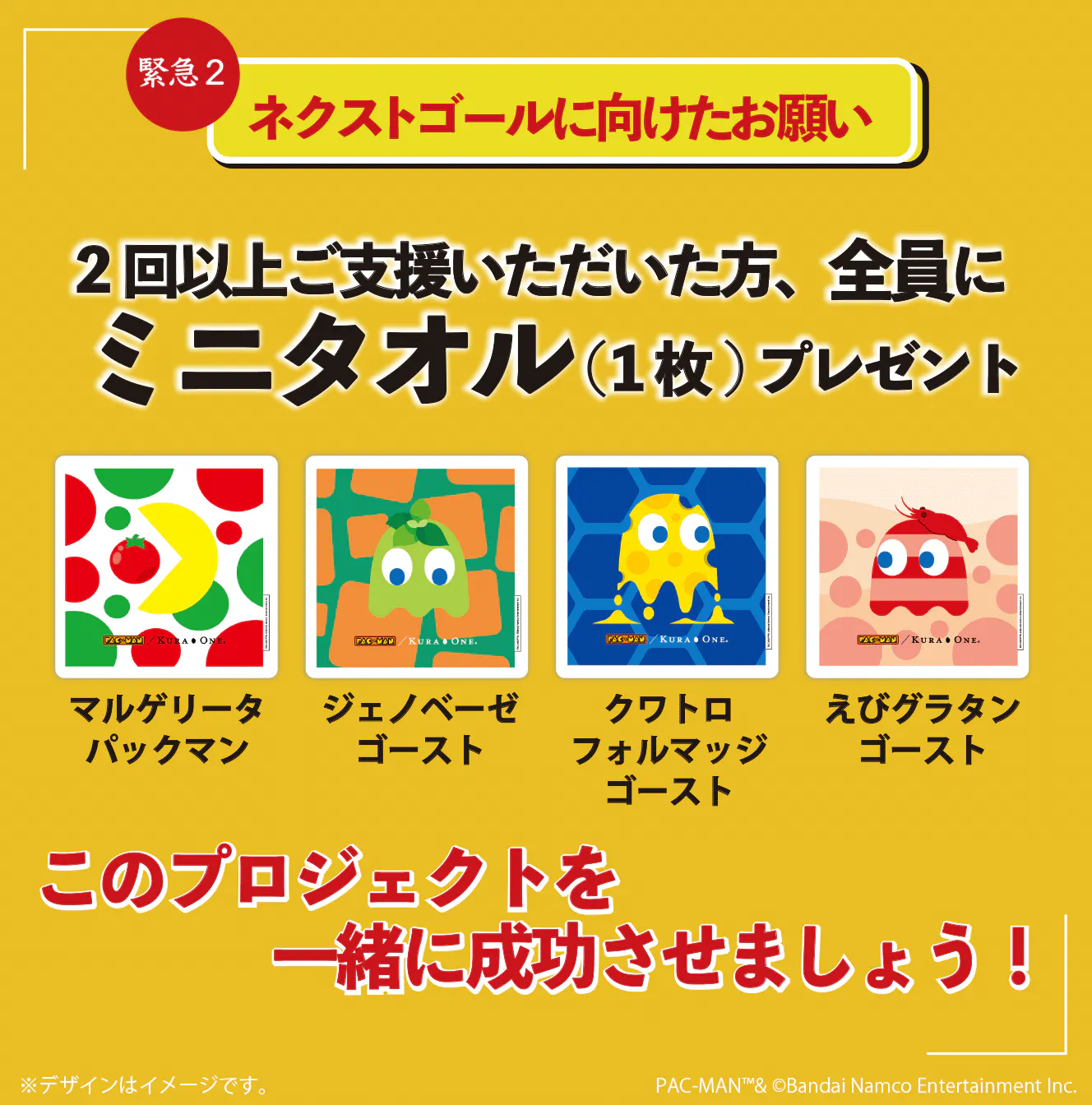 プロジェクト終了まであとわずかとなりました。ネクストゴール達成に向けて、特別な特典をご用意しました。なんと、2回以上のご支援をいただいた方全員に、可愛いミニタオルをプレゼント!