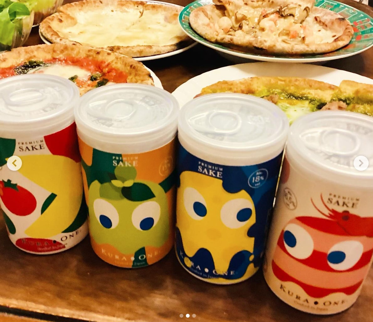 ピザとKURA ONE限定デザイン日本酒。ホームパーティにもってこいのセットですね。色鮮やかで、サラダがあるとさらにGood。会話も弾む空間を演出できそう。https://www.instagram.com/p/C_7JNlmyf_c/?utm_source=ig_web_copy_link