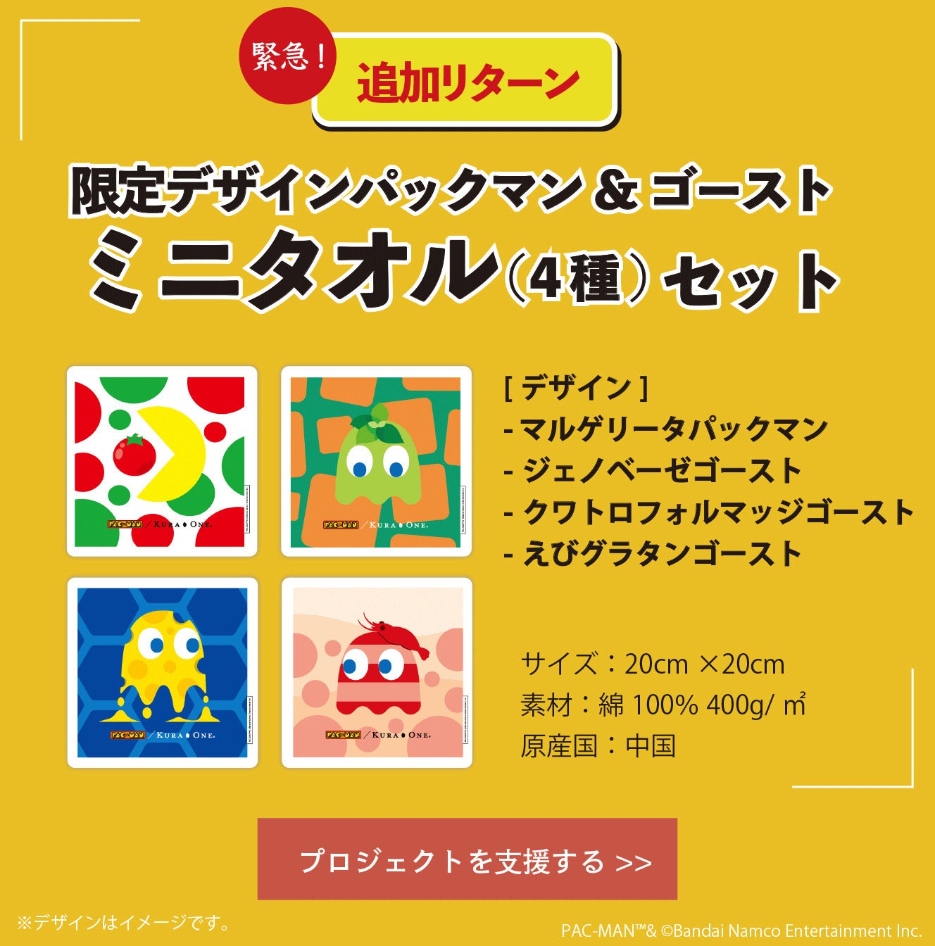 【追加リターン】限定デザイン パックマン&ゴーストミニタオル (4種) セット