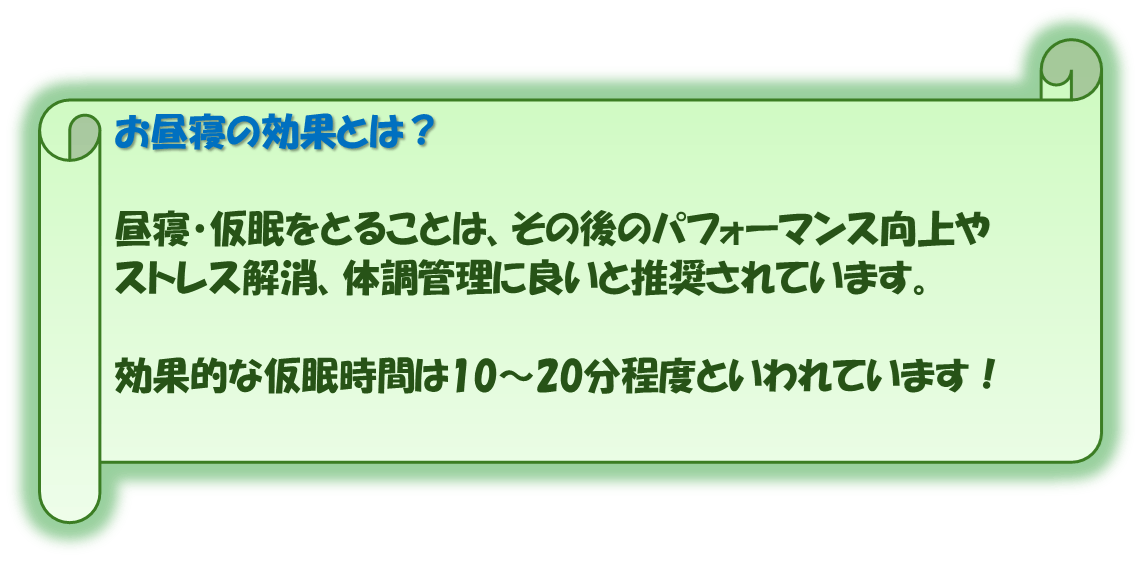 眠気が覚めずにいると、仕事や運動に集中できないだけでなく、運転の安全性も低下します。大人だって昼寝(仮眠)はしたいし、睡眠は非常に重要です。