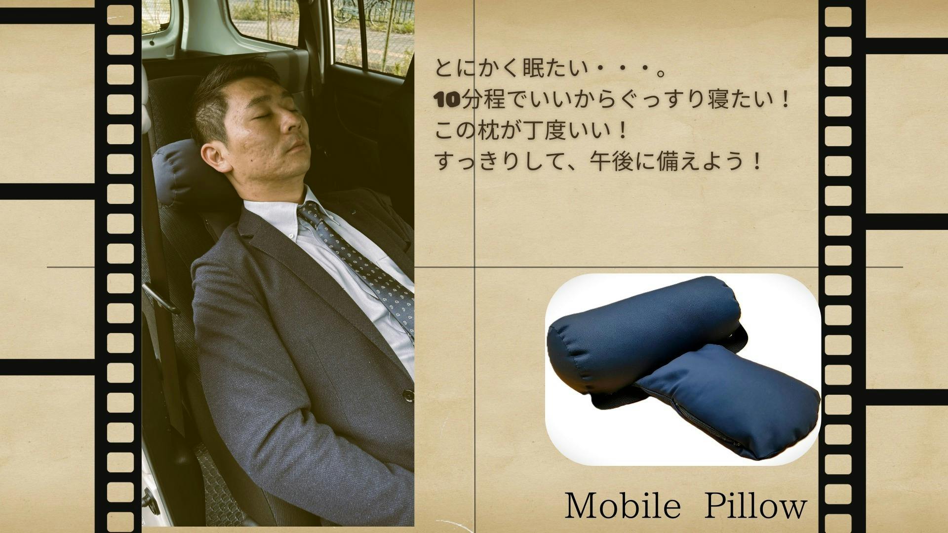 Mobile Pillowは、特に車での駐車休憩やその他の移動時に利用できる枕として、皆様の休息をサポートしたい思いで、製作完成しました。