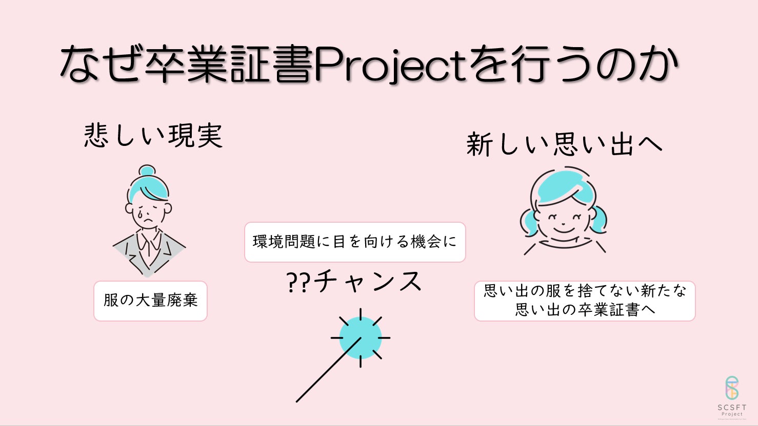 渋谷区の「子供の力で街をもっと良くしよう」というワークショップ「Social Kids Action Project(SKAP)」に、卒業証書プロジェクトの発案者であるSaayaが小学5年生の時に参加し、「SCSFTプロジェクト」というものを発案したことから始まりました。