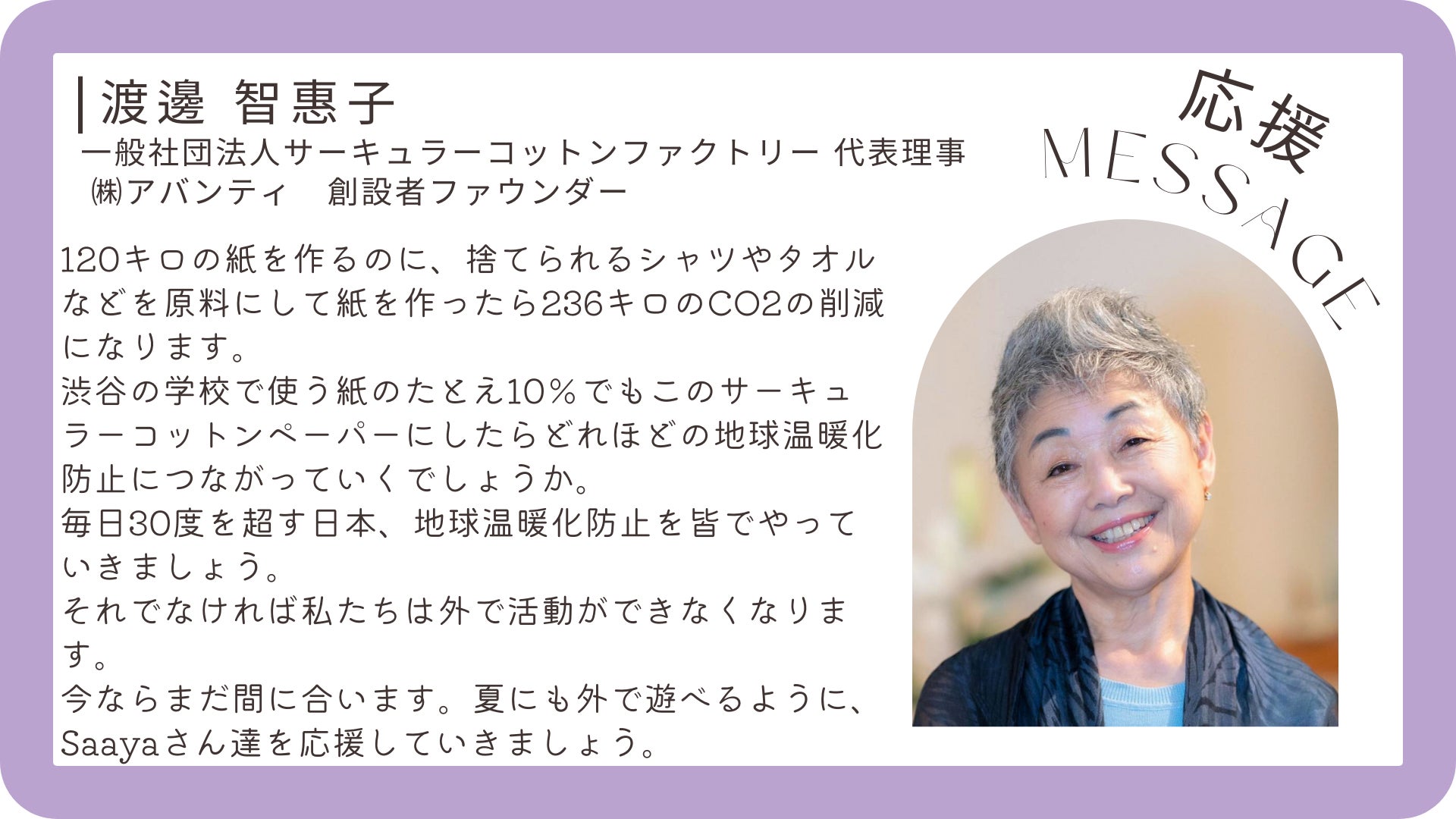 そして、多くの方に支えていただきながら、未来の子どもたちがより良い世界を見られるように活動をしています。