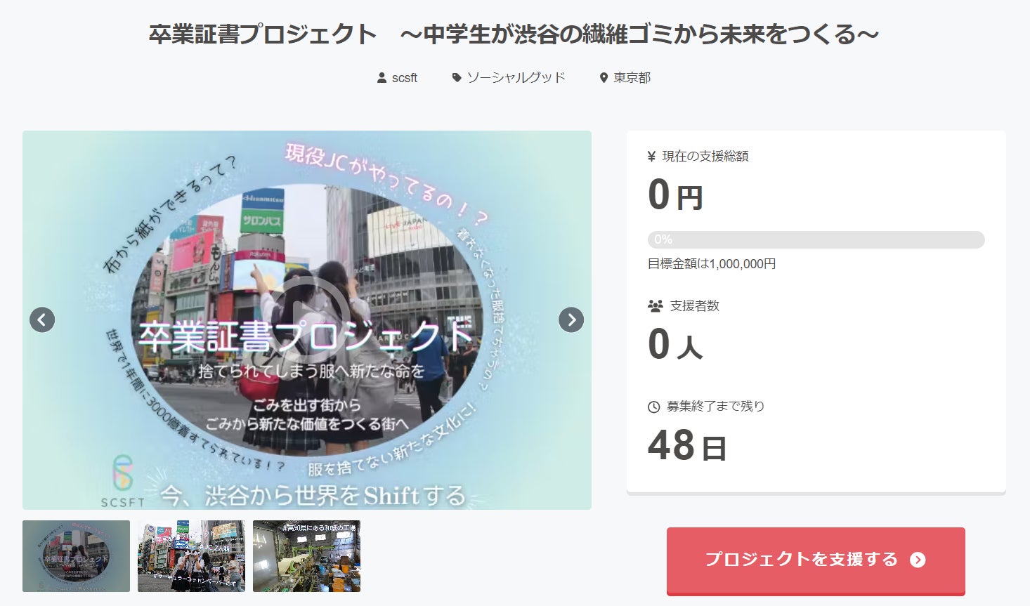 タイトル『卒業証書プロジェクト ~中学生が渋谷の繊維ゴミから未来をつくる~ 』