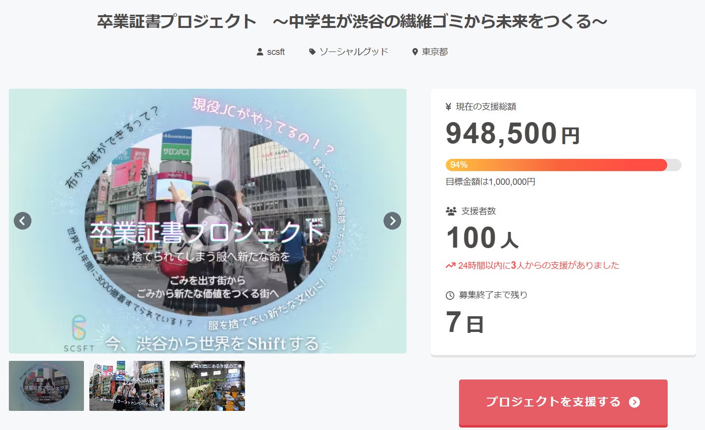 目標金額までは残り約5万円とあと少しですが、ラスト1週間頑張っていきたいと思います。