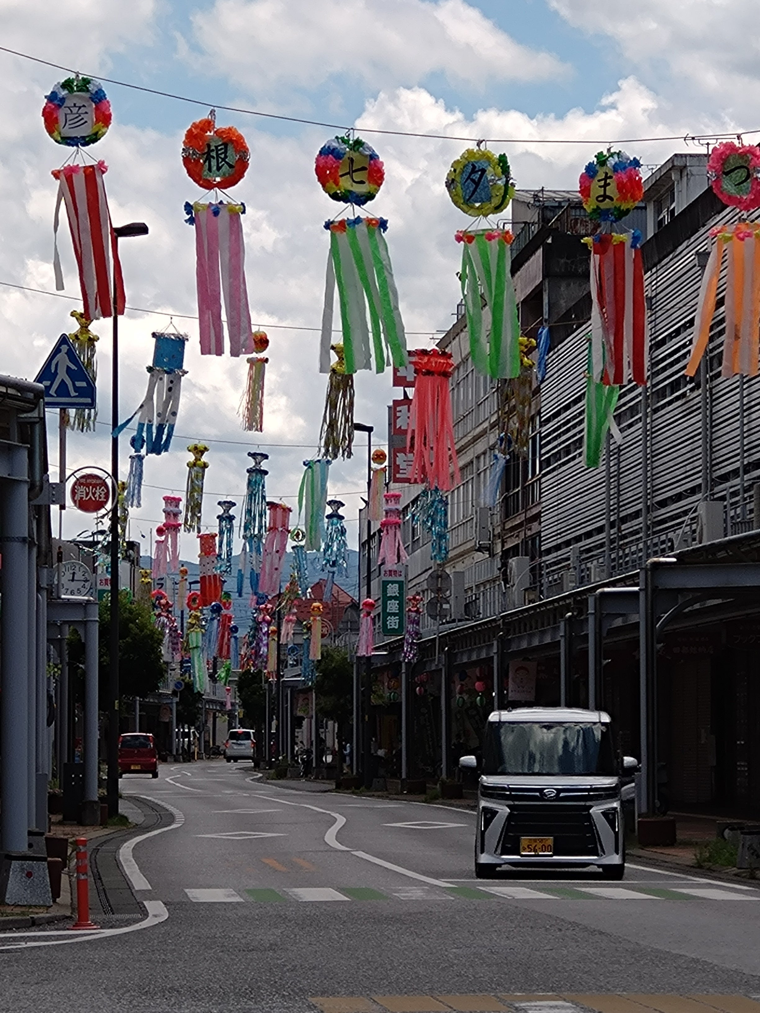 ↓おまけ。7月に商店街で行われる彦根七夕まつりのために装飾されたときの銀座商店街。これも自転車に乗っていて、お、これは撮らないと!と思ってすぐとまって、撮影しました。