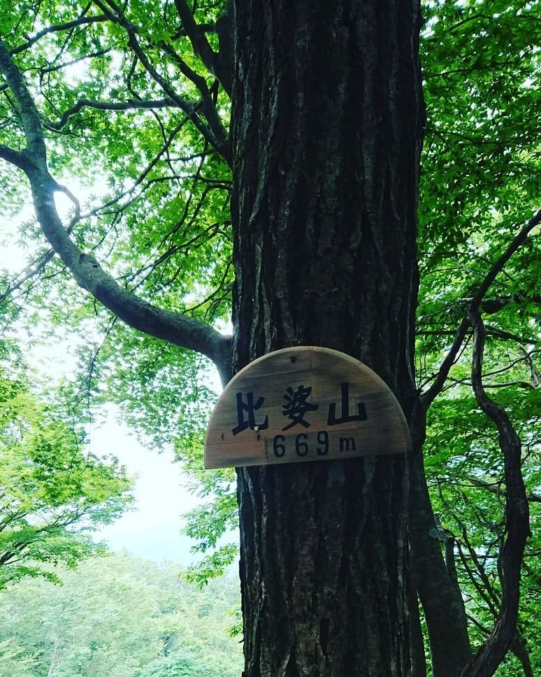 ▼彦根市鳥居本町にある「比婆神社」(男鬼集落へ向かう林道の途中からアクセスできる山の上の神社)への道しるべ(2019年撮影)