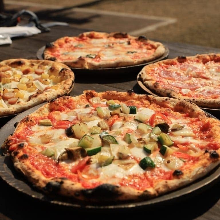 ▼道の駅せせらぎの里こうら「ピッツェリアUNO 」の地元野菜をふんだんに使ったピザ