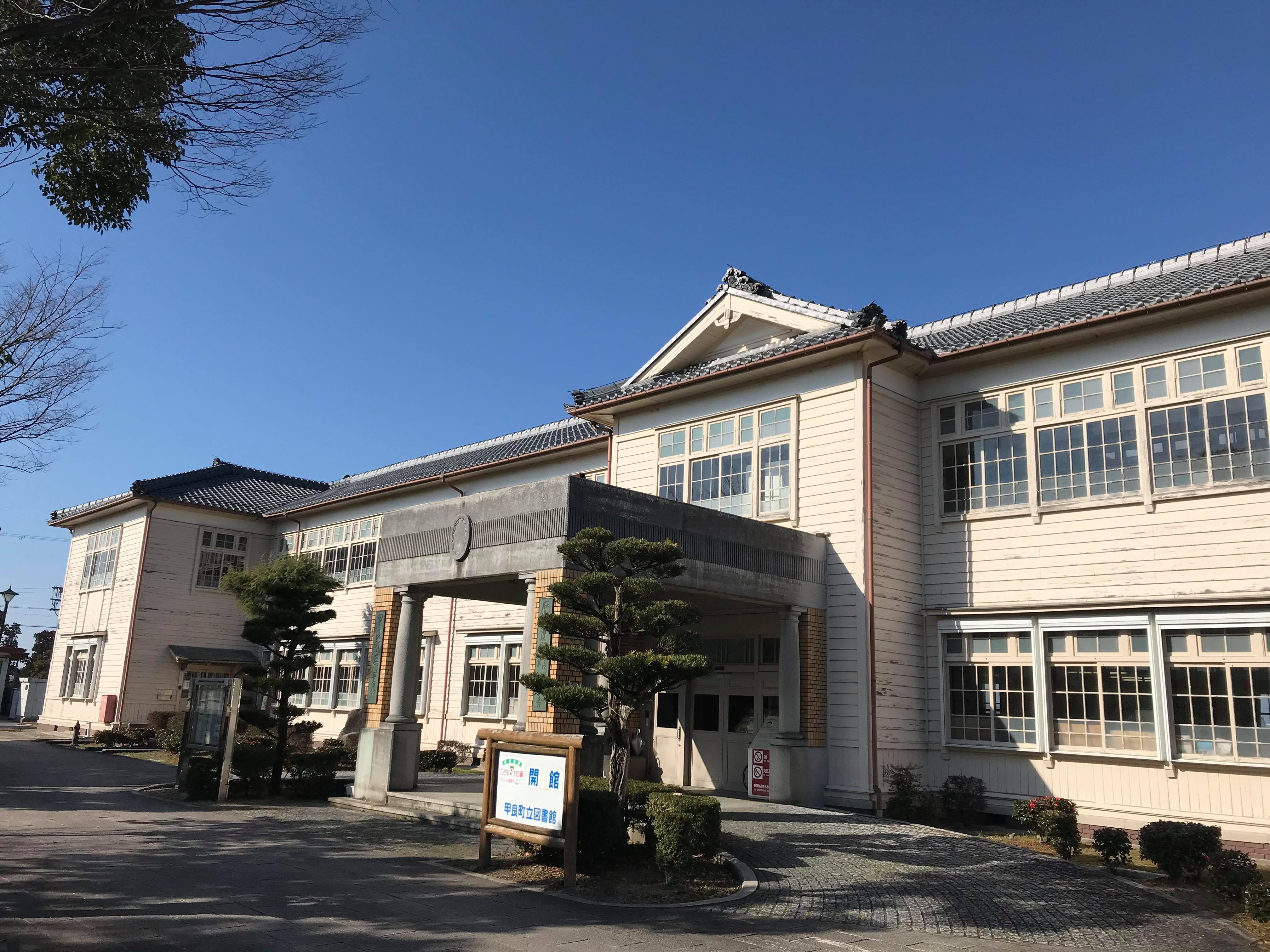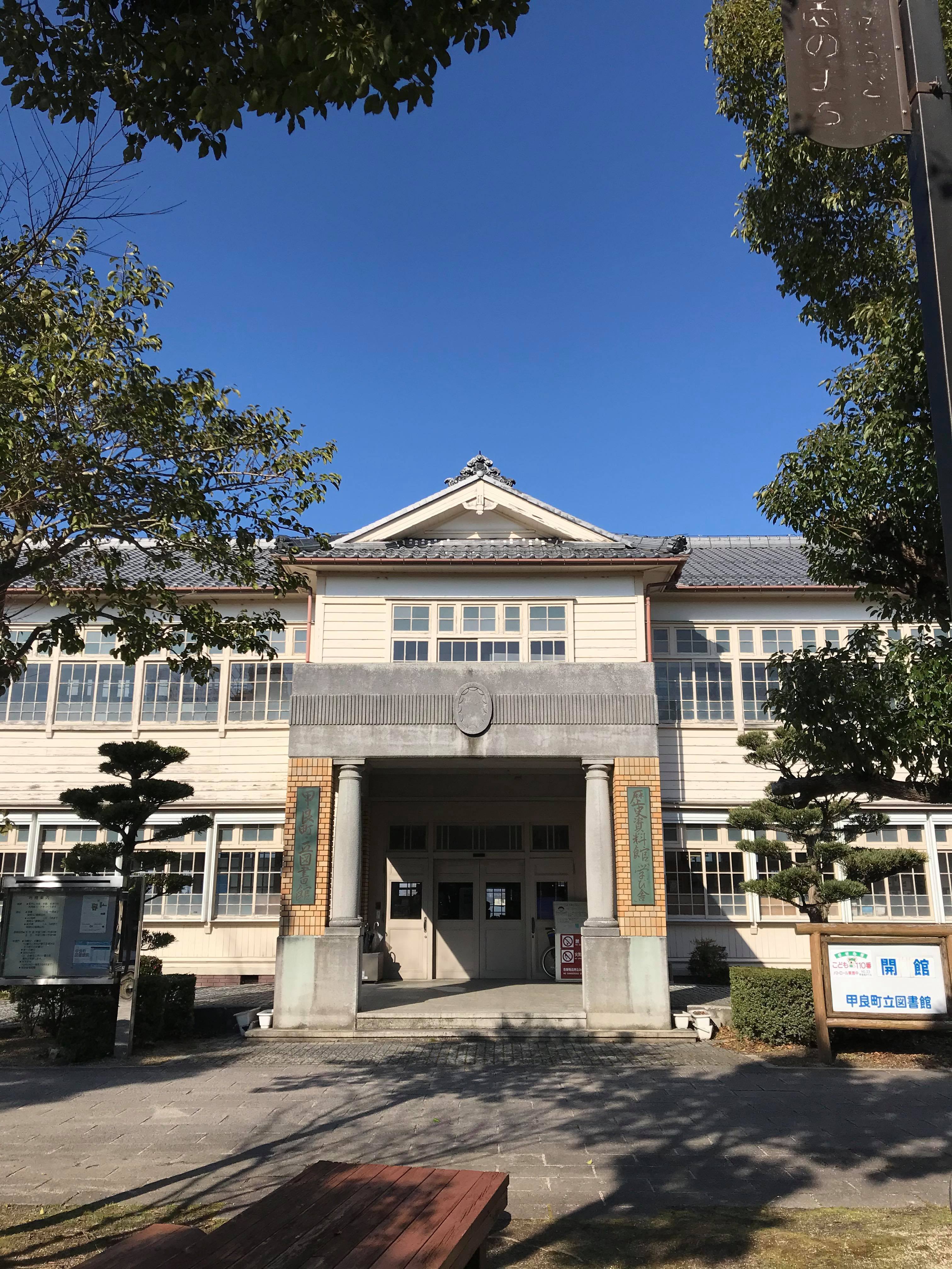 道の駅せせらぎの里こうらはその構造の田んぼ側にあり、甲良町図書館はムラ側にあると言えます。この道の駅はなかなか人気があり、車もバイクも自転車もけっこう立ち寄られます。新鮮な地場野菜が販売されているほか、レストランがあり、とくにこの道の駅の顔にもなっているピッツェリアUNOが地元野菜を使ったピザを作っているのもあり、美味しいと評判。コーヒーと一緒に味わえてサイクリストにもウケがいいです。コーヒーとピザをこの緑の田園風景を愛でながら味わえるって空気も美味しくて最高。道の駅からさらに少し西に行ったところに横関の集落があり、手前に小学校やJA、駐在所、そして図書館が集合したエリアがあります。ここの図書館がまた味があっていい。パッと見、もしかしてこれもヴォーリズ建築?と思ってしまうくらいレトロな図書館です。ここも当初は小学校として建てられたもので旧校舎を図書館として再活用しておられます。図書館の道向かいには現小学校や駐在所がありますが、反対側は田んぼです。これが小学校だった時を思うと…まるでとなりのトトロのさつきが通う学校みたいで、ここにも昭和初期の香りが良い感じで漂い、またワクワクしてしまいます。