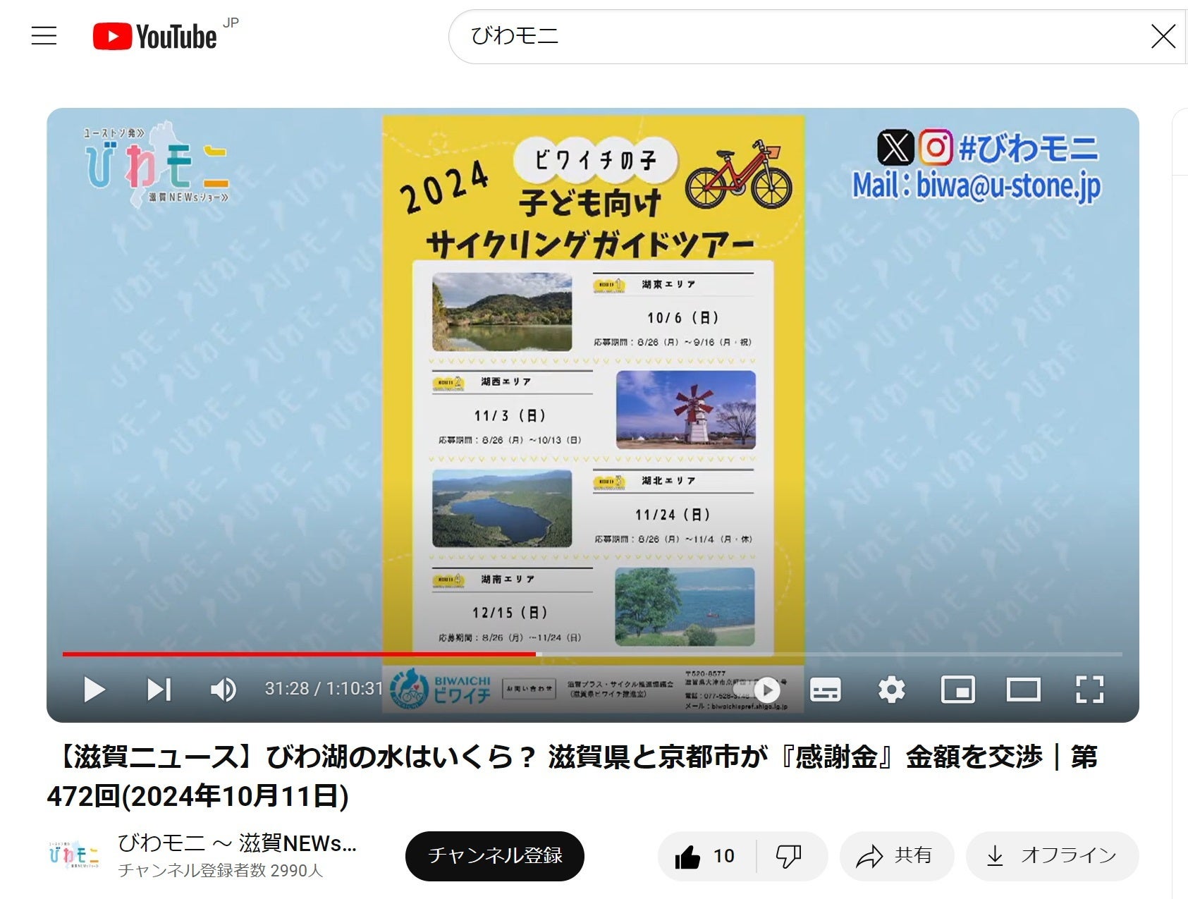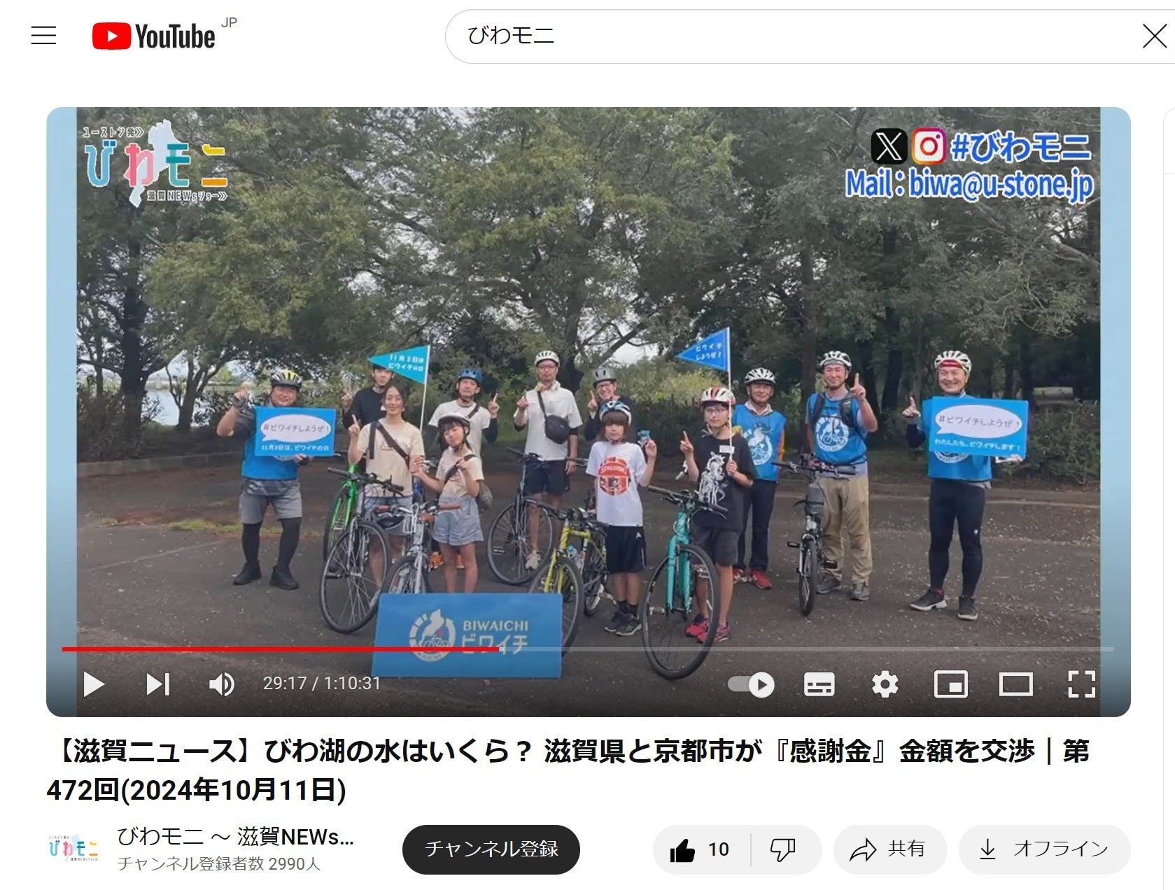 でも是非他の部分も見ていただきたいです。非常に興味深いです。私ももともと琵琶湖からの環境問題への関心を強めてきたクチなので、いずれもとっても興味深く面白くかなり勉強になりましたし楽しかったです。実は出演にお誘いいただくまで存じ上げなかったのですが、これからは、とくに月一MLGs特集の日は視聴したいと思います。今回の動画タイトルが「びわ湖の水はいくら? 滋賀県と京都市が『感謝金』金額を交渉」ですよw 感謝金て…琵琶湖疎水の歴史と背景って…ほんとに、県民でも知らないことはやっぱり多いですが、こういう機会でどんどん学んで環境・社会を良くするための力に変えたいなと思います!