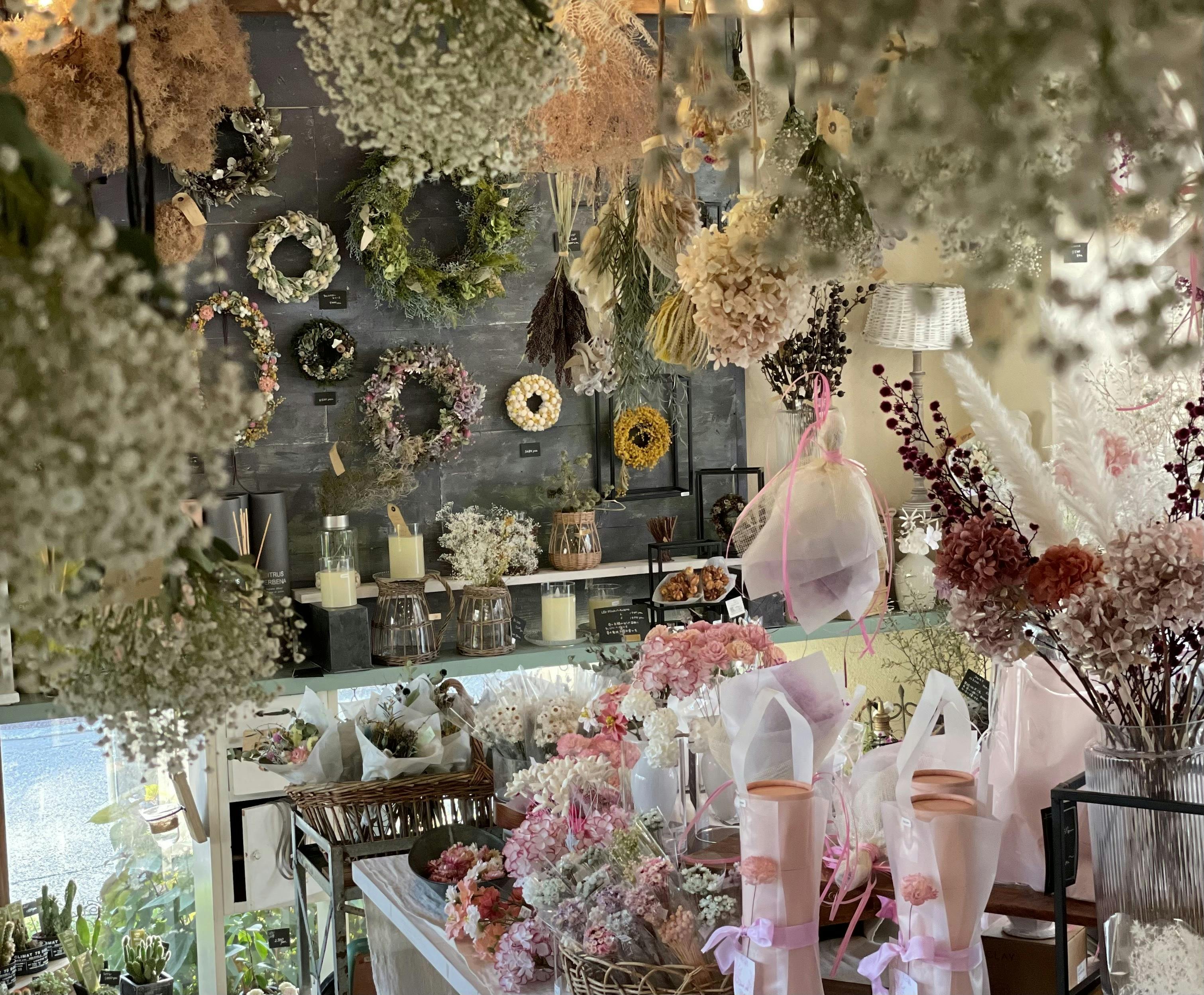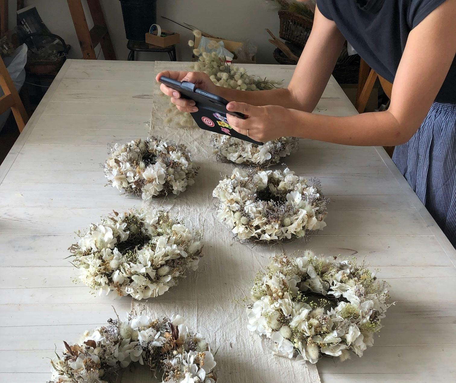 その後、友人と2人で展覧会を開催し、ドライフラワーの魅力とリース作りの楽しさを多くの方に伝えたいという想いからレッスンを開始。
