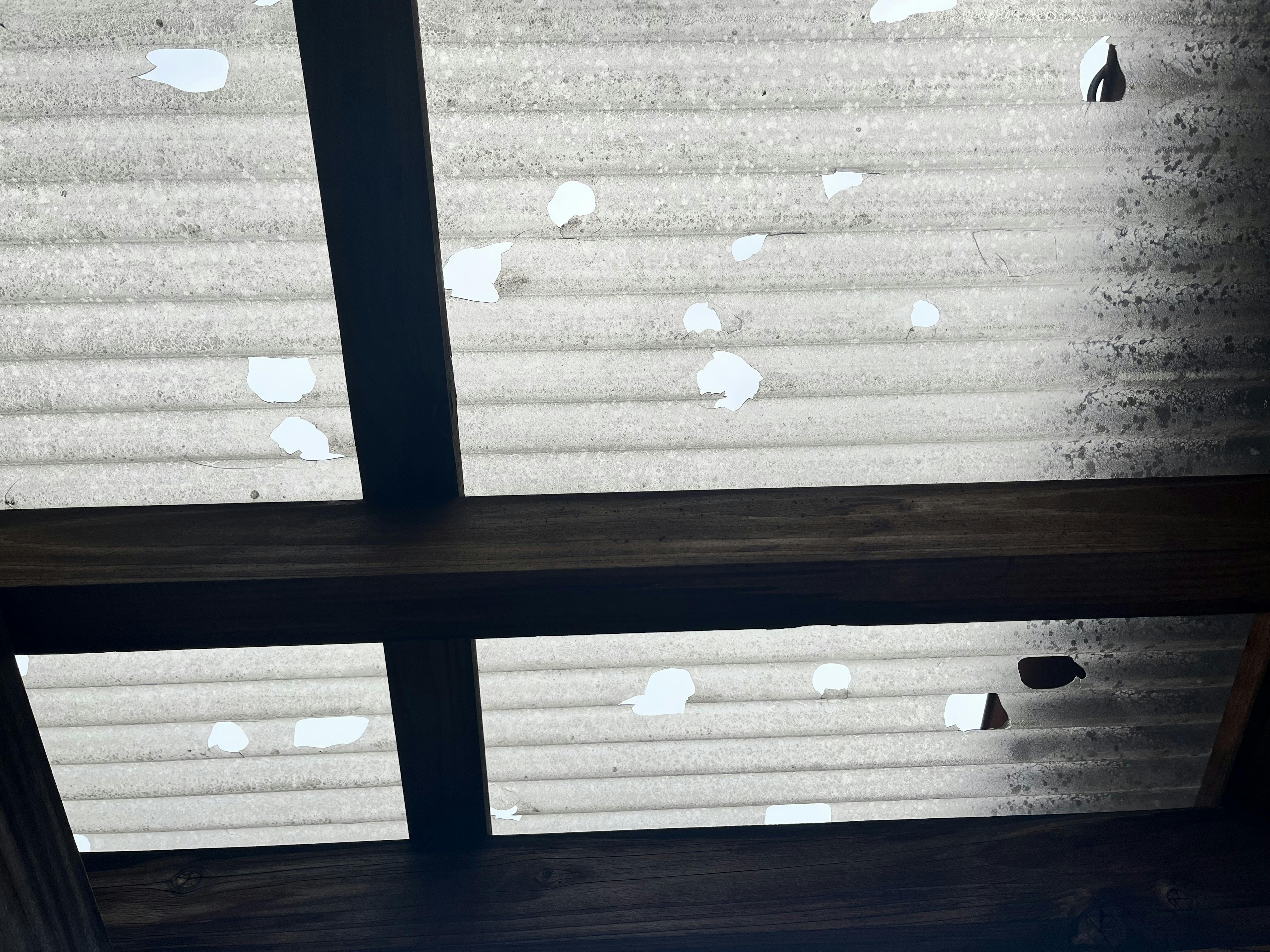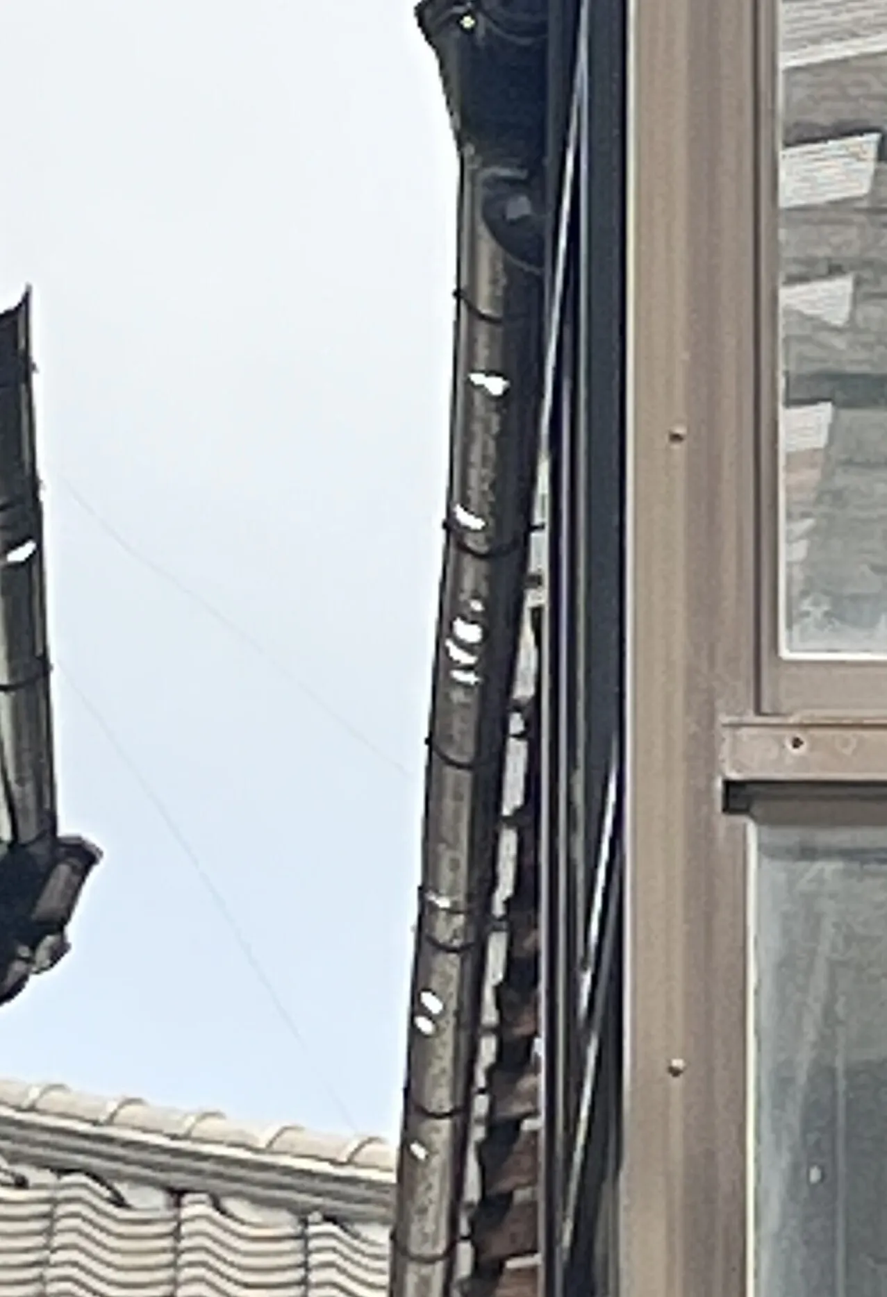 サンルームやベランダ、雨どいなど無数の穴が開きました。その後、豪雨のたびに