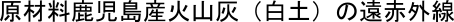 白土は、噴出した地底エネルギーマグマが海陸変動等、氷河期などを含めた40万年の時間をかけて作られた、遠赤外線を有する火山灰自然変化の奇跡の粒子と言われております。
