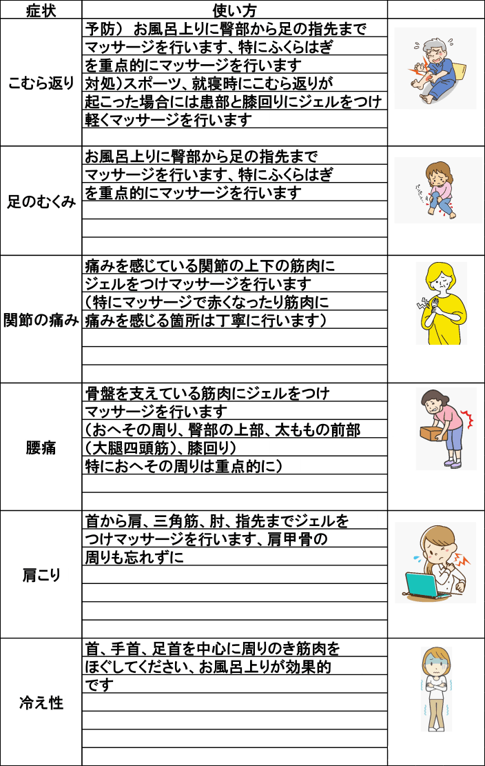マッサージ用リカバリージェル「YOUGO」の仕様