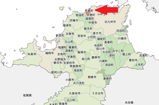 福岡県遠賀郡芦屋町は、九州北部に位置しています。