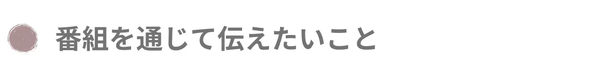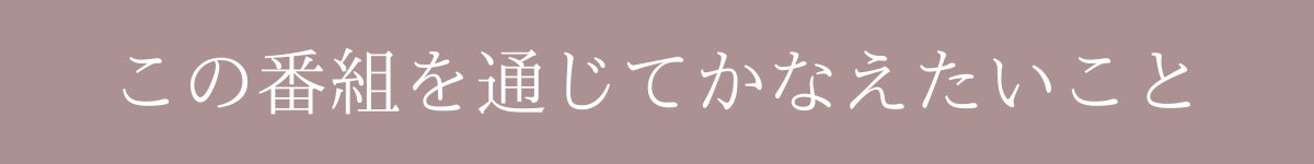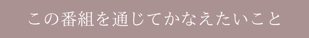 この番組を通して自分と向きあうことで、新たな気づきや深い癒やしを得て、「いまが一番幸せ!」と自分を全肯定できる方が増えれば、私としても、大変うれしいです。
