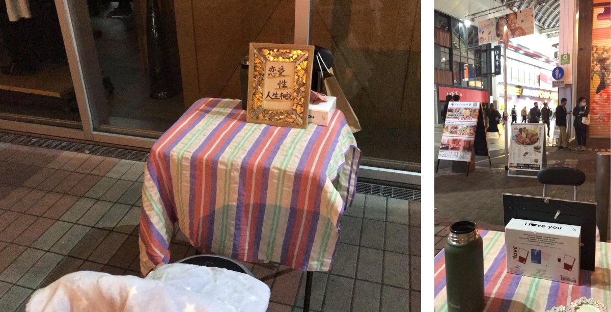 2021年秋、私が住む熊本県の繁華街で、占い師のように机を置いて路上相談を受けるということを数回にわたってしてみました。すると想像以上にたくさんの方が相談するために並んでくださったのです。