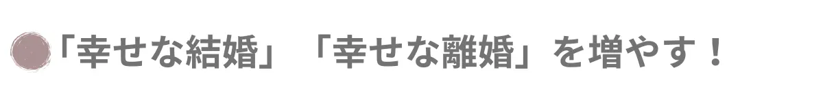 パートナー間の問題のなかでも、「結婚」を選んだ2人は、その制度ゆえにお悩みが深くなる場合が多いです。そのため、私は「幸せな結婚」「幸せな離婚」を増やしたいと思っています。