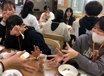 ①施設の中学生同士が出会い、親睦を深める。