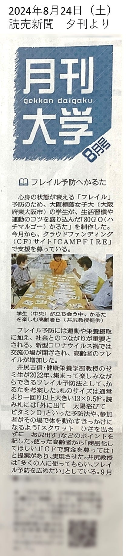 8月24日(土)読売新聞 大阪本社版夕刊(西日本地域版)に「80GOかるた クラウドファンディング」が掲載されました!本かるたを多くの方に知って頂けるきっかけになることを祈ります。