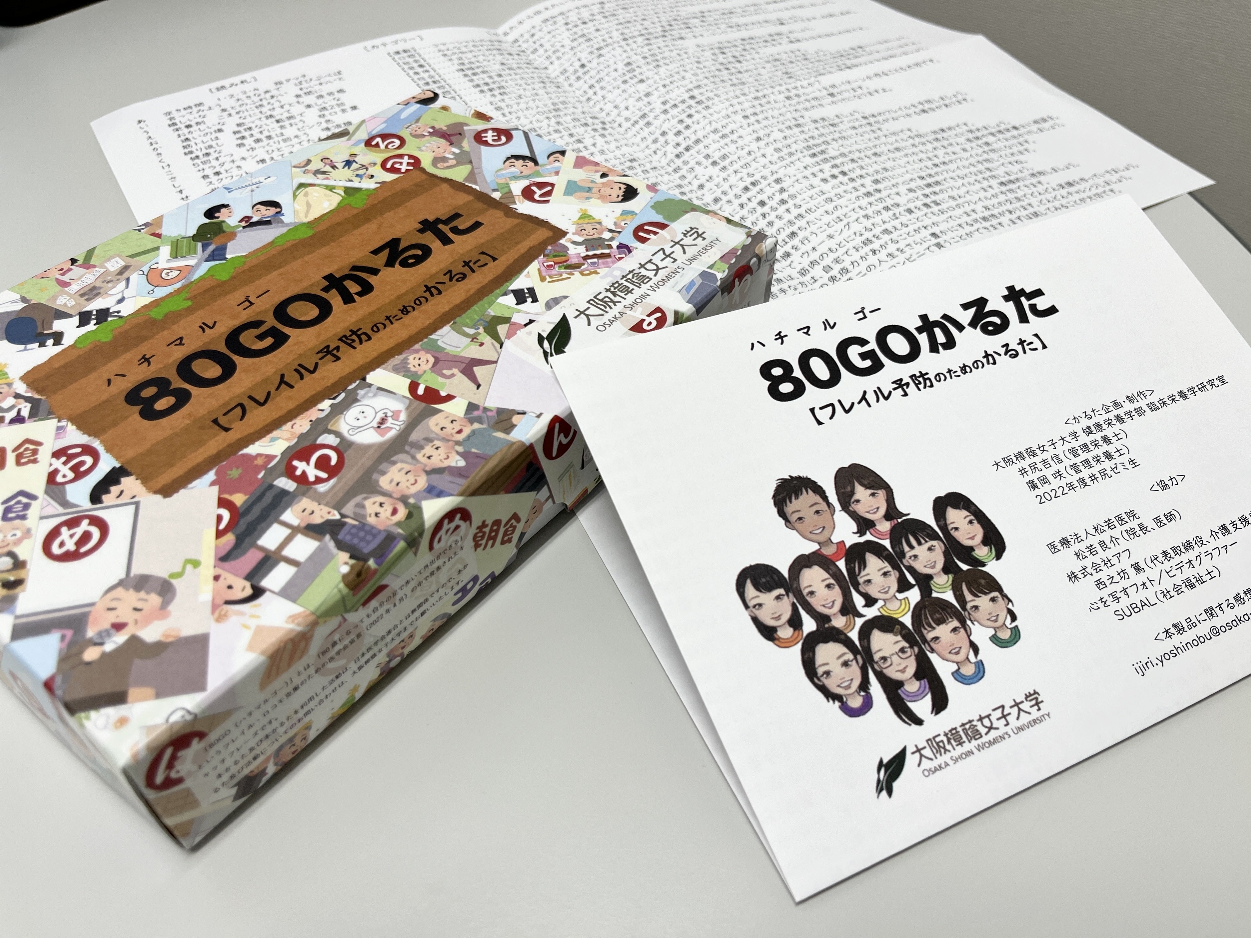 かるたに付ける「80GOかるた説明書」に、各読み札から伝えたい『フレイル(心身の衰え)予防メッセージ』を記載しました(写真上段)。かるた実施時にコピー頂き、参加者のお土産として配布頂けると嬉しいです!