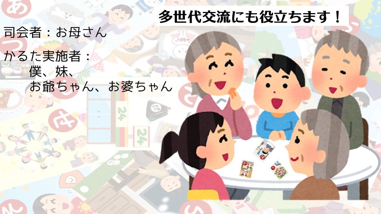 リターン時期は少々ズレますが、9月16日の敬老の日のプレゼントに「80GOかるた」はいかがでしょうか?(5,000円プラン…かるた1セットリターン)遠く離れた祖父母に送ってあげるも良し、小学生のお孫さんとおじいちゃん・おばあちゃんが一緒に遊ぶ(交流する)も良しです!取り棒や読み原稿付きのセット(10,000円プラン)であれば、お父さんやお母さんが司会者になり、家族みんなで歌ったり踊ったりしながらゲームが進められるので、盛り上がること間違いなしです。年齢を問わずに楽しめるのも、このかるたの大きな特徴です!多世代交流のきっかけになりますように!