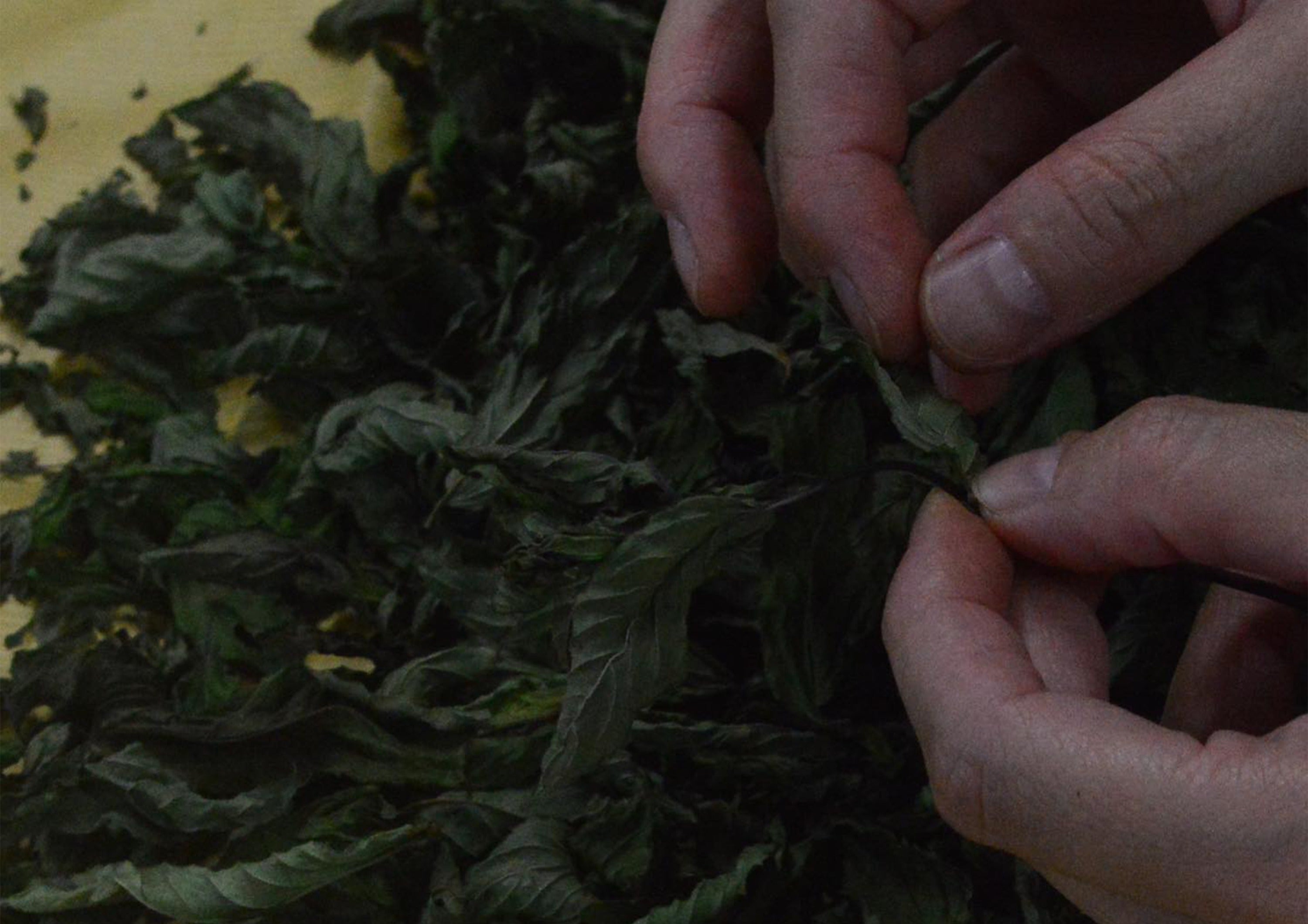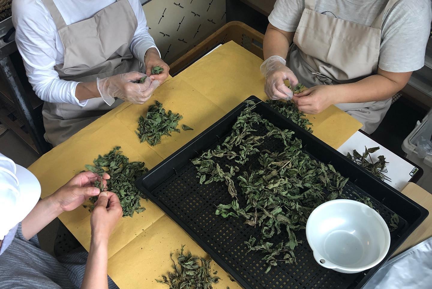 音吹畑を訪れた際、私たちは高田夫妻から実際にあるハーブ畑の見学と乾燥ハーブのサンプルをいただきました。その香りを嗅いだ瞬間、私たちはその豊かな香りに心を奪われました。