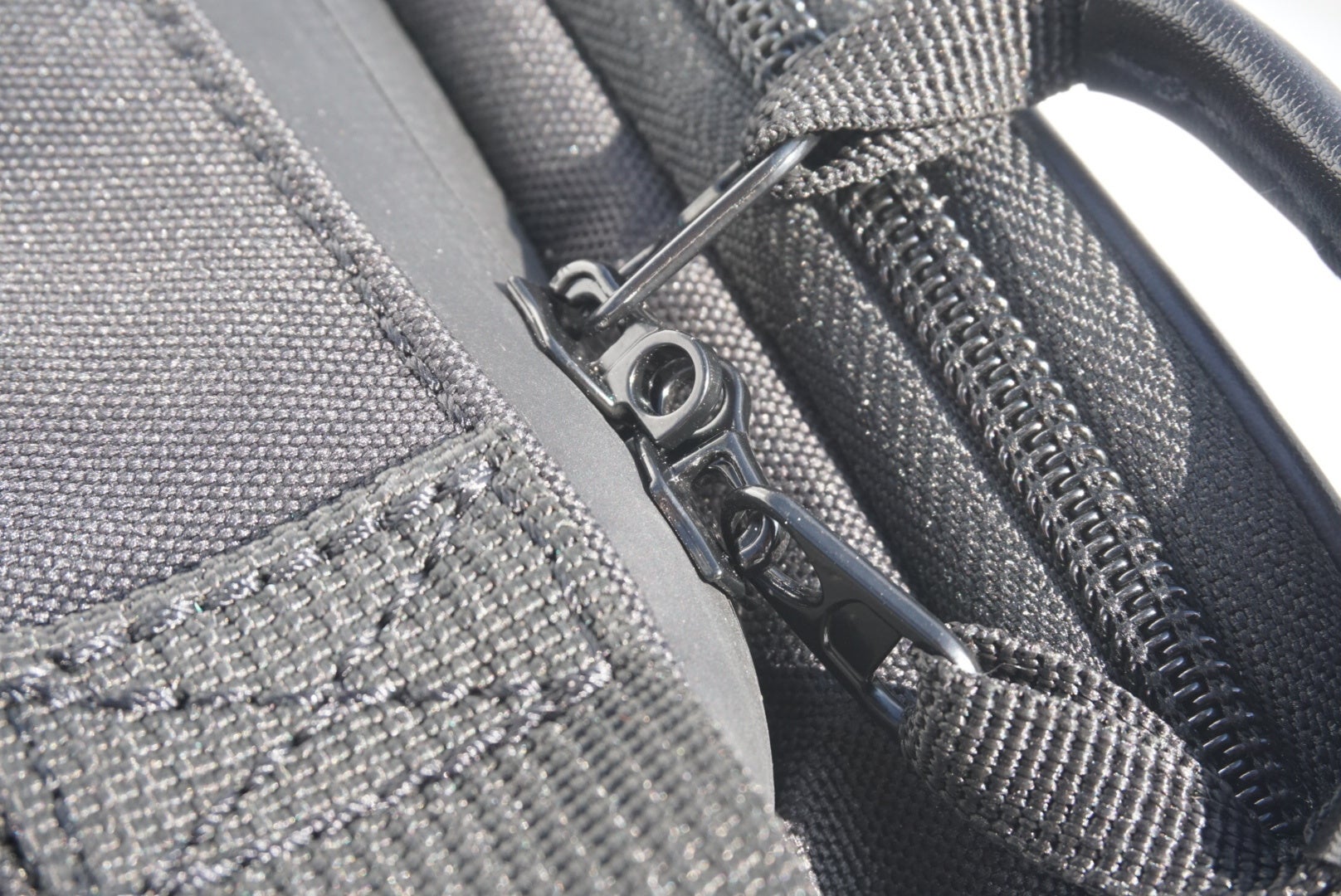 メインファスナーにはセキュリティジッパーを採用しており、重ねた穴に小さな南京錠を通すことで盗難防止に役立ちます。