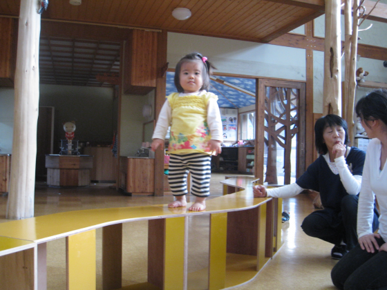 この棚は...こういう素材で...使い方は自由に...と先生へ説明している横では、すでに自由に使っている園児が!! 子供たちの考えは純粋で無限の可能性があるんだなと素直に思えた一瞬でした。