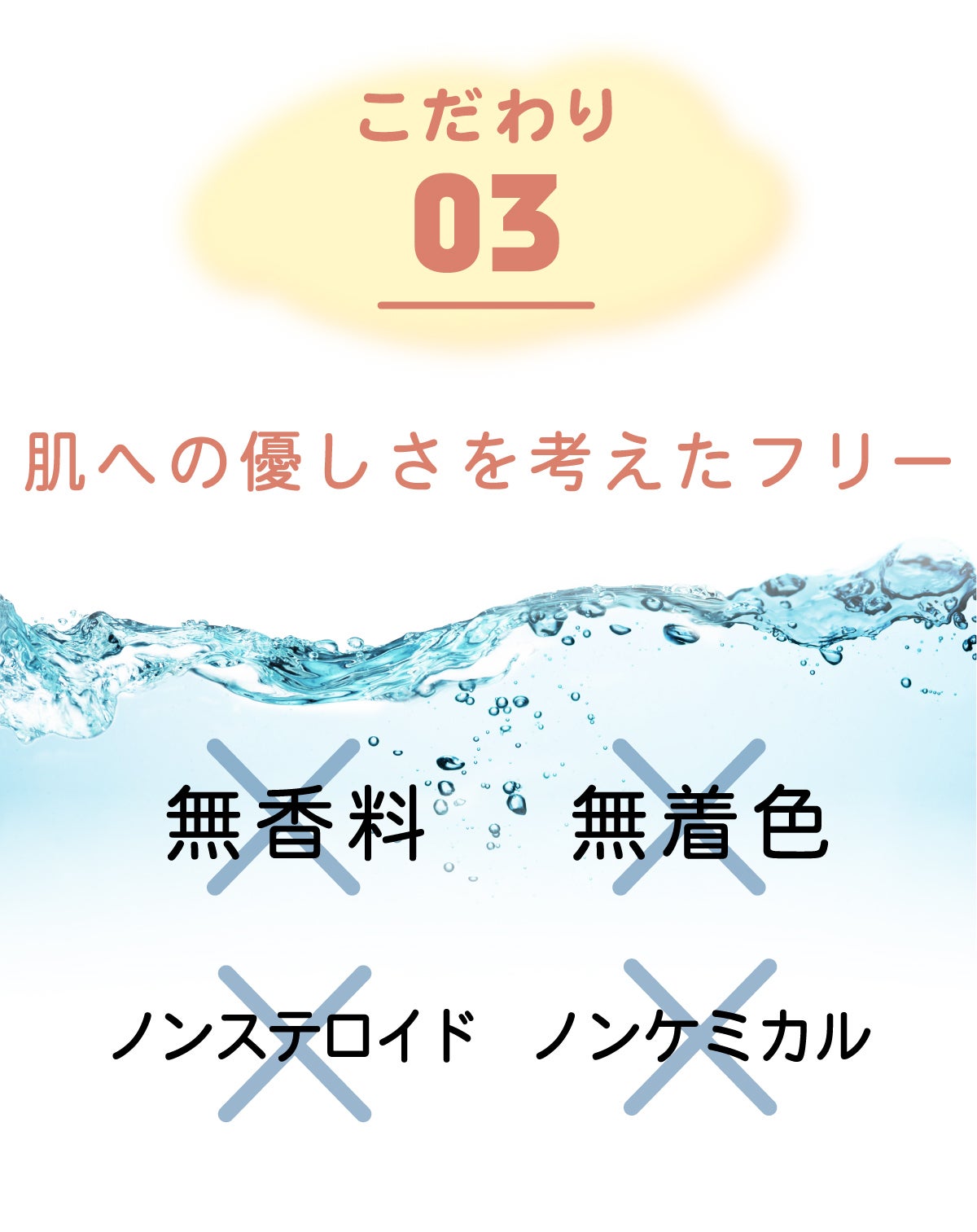 お肌への優しさを最大限に考慮して厳選した成分のみを配合した無添加設計です。