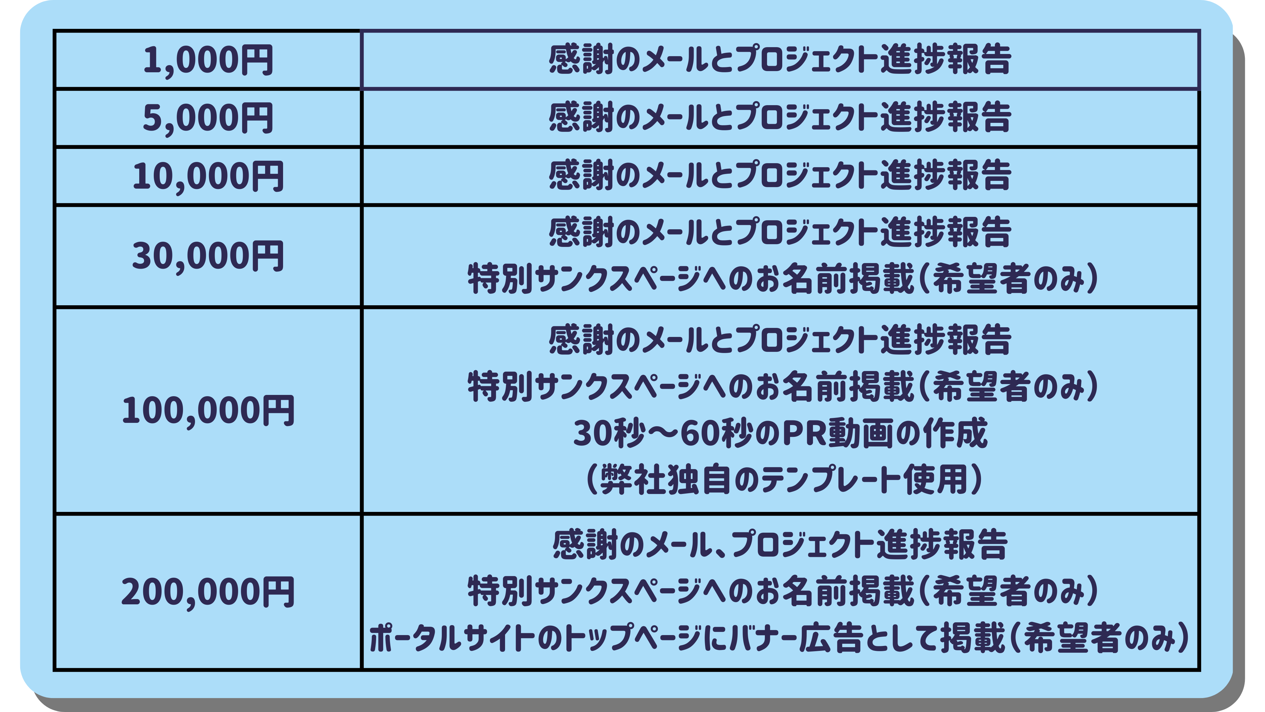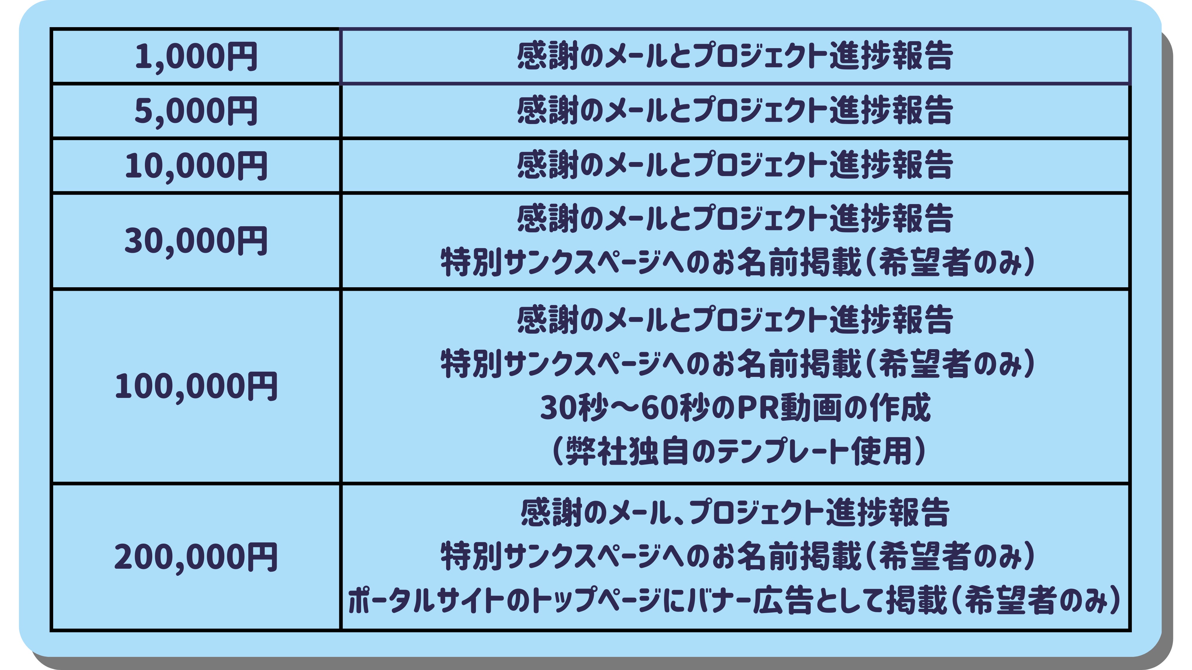 ◆ご支援いただいた方には、以下のリターンをご用意しています。