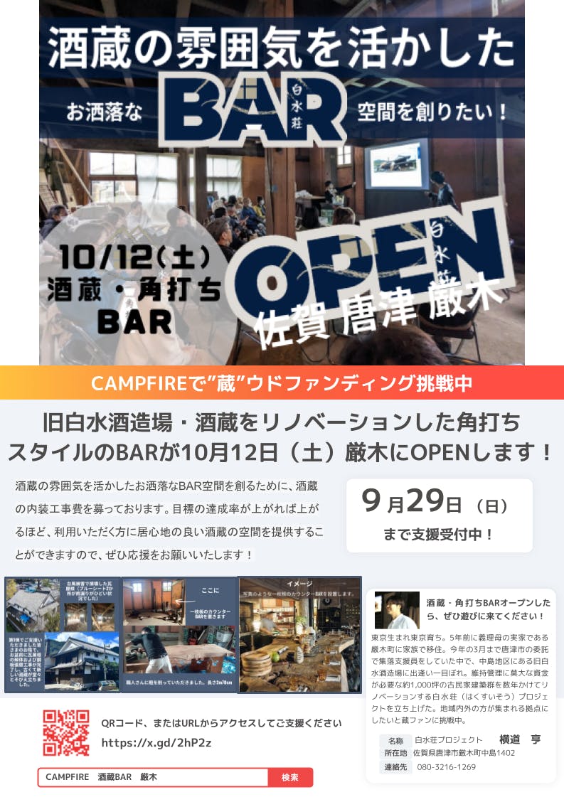 目標の達成率が上がれば上がるほど、利用いただく方に居心地の良い酒蔵の空間を提供することができますので、ぜひ引き続きの応援をよろしくお願いいたします!