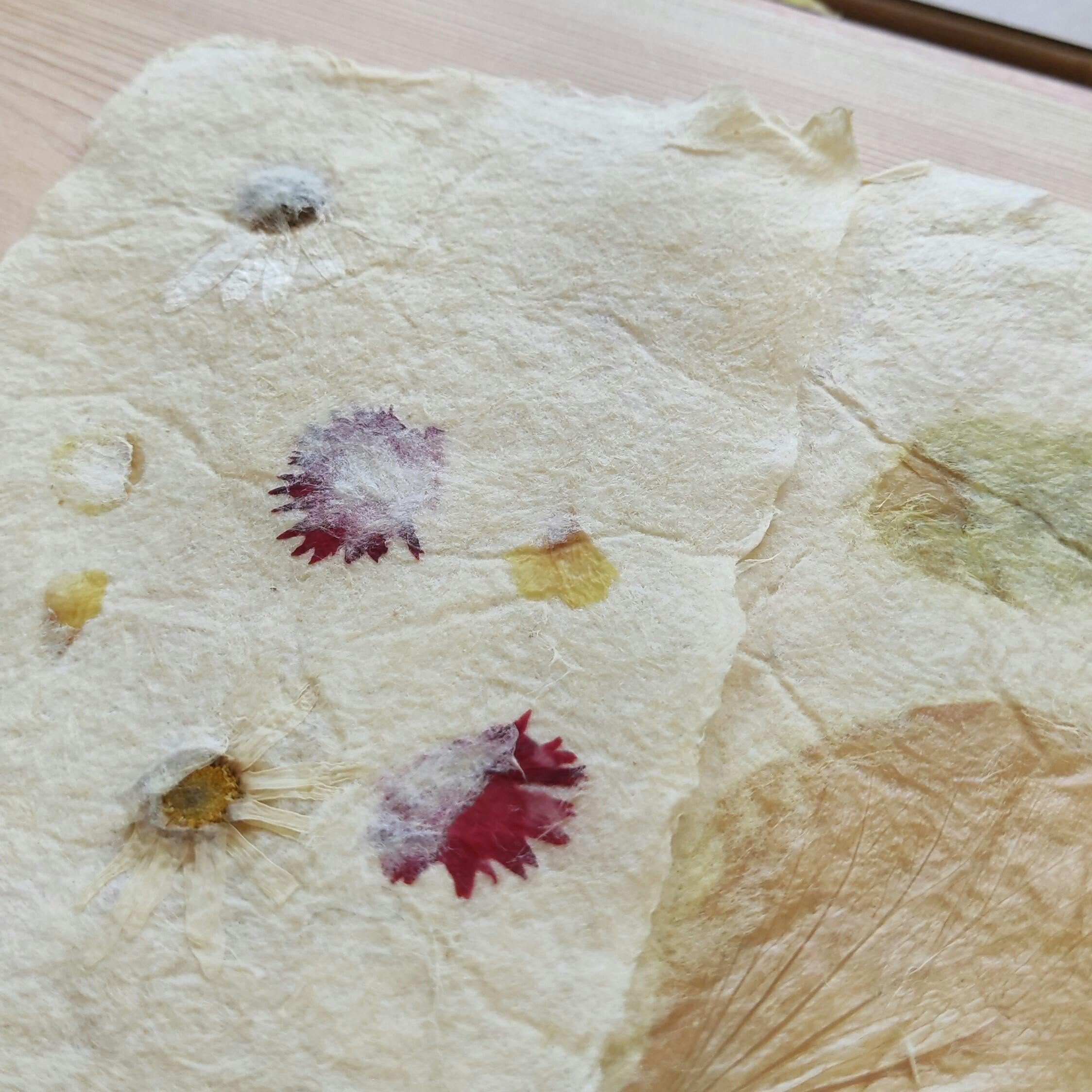 その⑦ ハイビスカスを使った和紙 島の植物の押し花をすきこんで